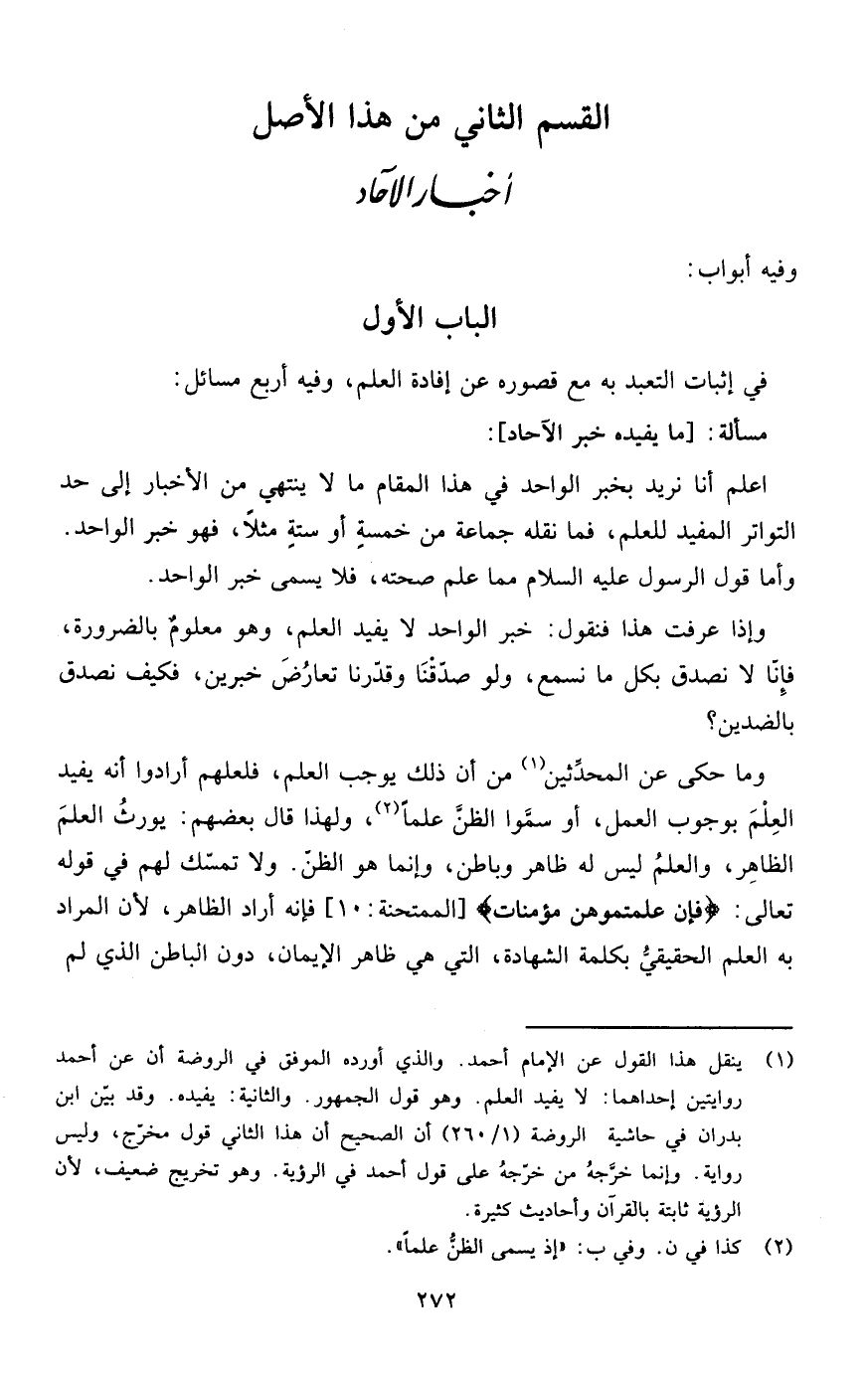 القسم الثاني: أخبار الآحاد