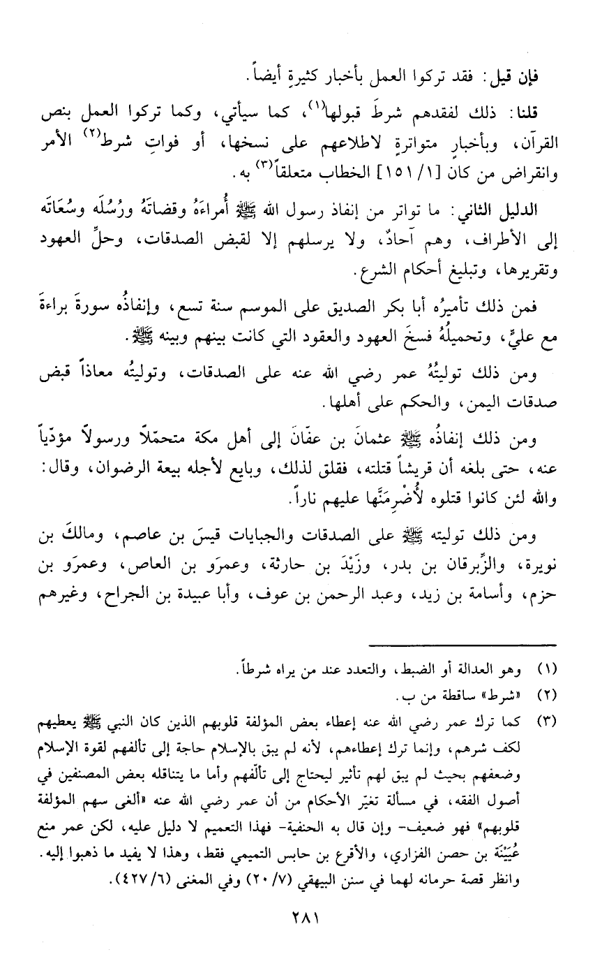 الدليل الثاني: ما تواتر من إنفاذ رسول الله صلى الله عليه وسلم أمراءه وقضاته ورسله وسعاته إلى الأطراف وهم آحاد ولا يرسلهم إلا لقبض الصدقات وحل العهود وتقريرها وتبليغ أحكام الشرع