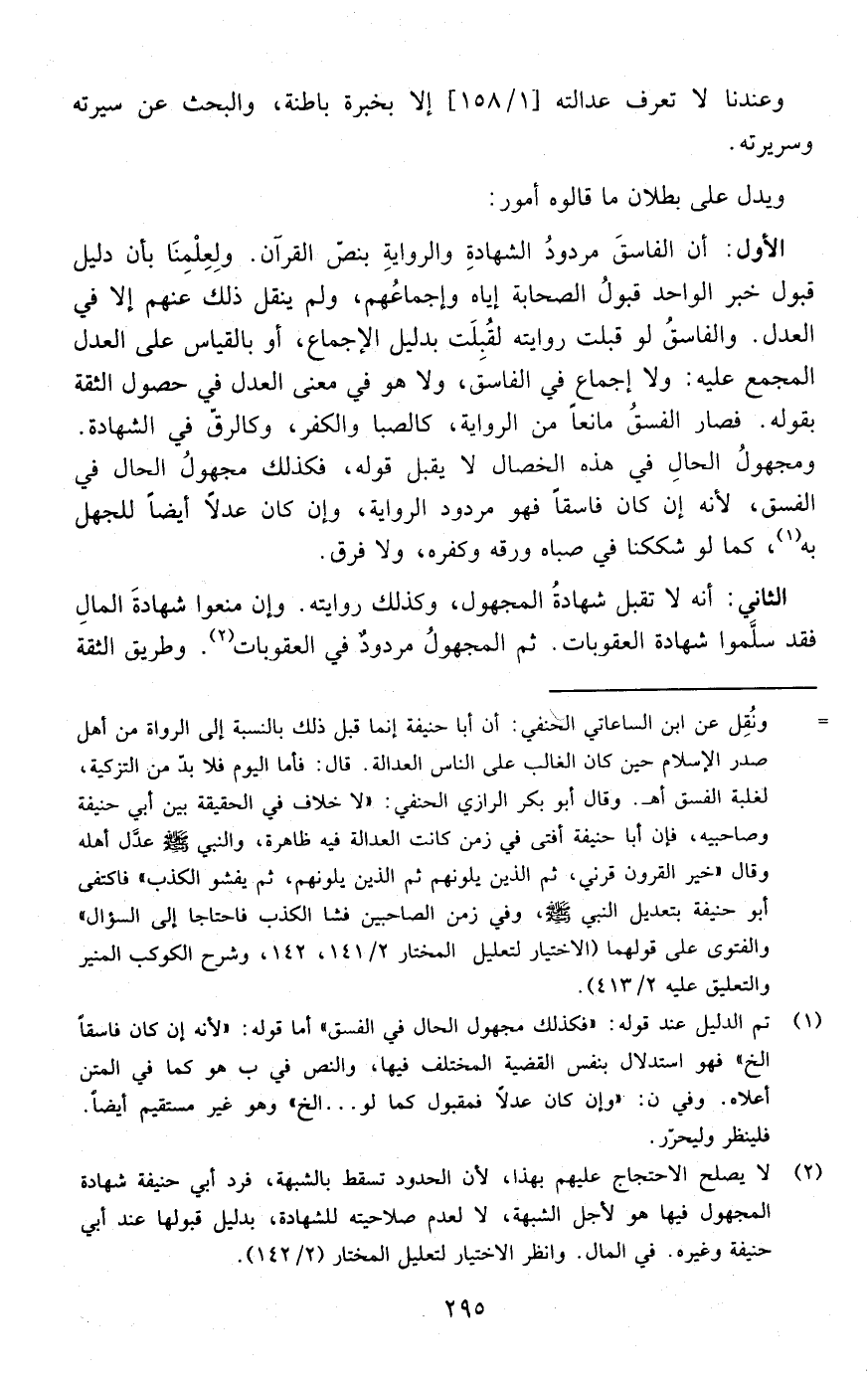 الثاني: أنه لا تقبل شهادة المجهول وكذلك روايته وإن منعوا شهادة المال فقد سلموا شهادة العقوبات ثم المجهول مردود في العقوبات وطريق الثقة