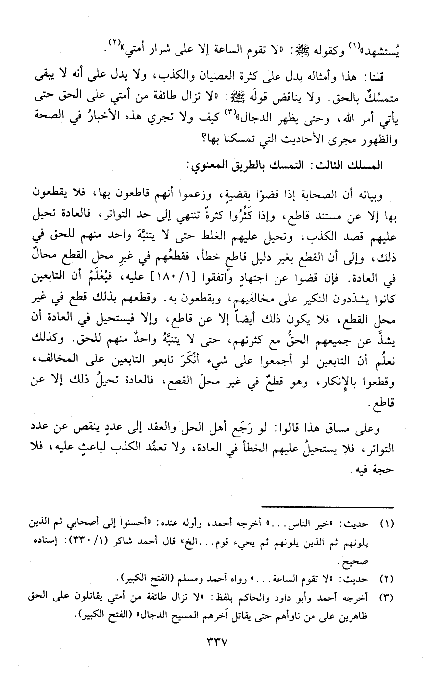 قلنا: هذا وأمثاله يدل على كثرة العصيان والكذب ولا يدل على أنه لا يبقى متمسك بالحق ولا يناقض قوله صلى الله عليه وسلم لا تزال طائفة من أمتي على الحق حتى يأتي أمر الله وحتى يظهر الدجال كيف ولا تجري هذه الأخبار في الصحة والظهور مجرى الأحاديث التي تمسكنا بها؟