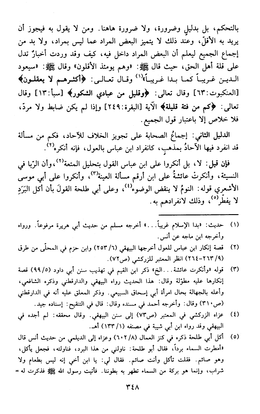فإن قيل: لا بل أنكروا على ابن عباس القول بتحليل المتعة وأن الربا في النسيئة وأنكرت عائشة على ابن أرقم مسألة العينة وأنكروا على أبي موسى الأشعري قوله النوم لا ينقض الوضوء وعلى أبي طلحة القول بأن أكل البرد لا يفطر وذلك لانفرادهم به.