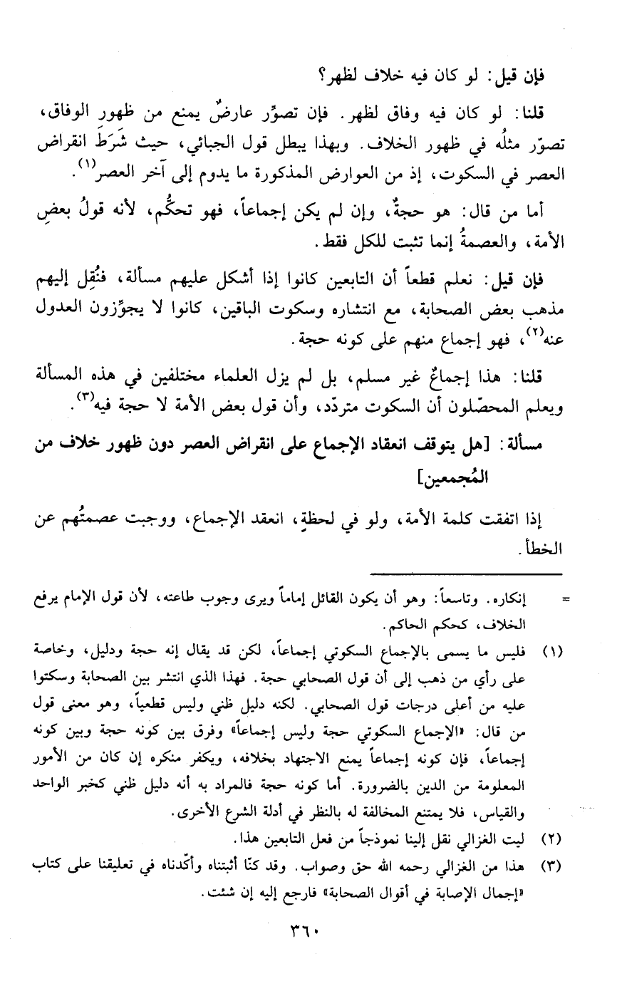 قلنا: هذا إجماع غير مسلم بل لم يزل العلماء مختلفين في هذه المسألة ويعلم المحصلون أن السكوت متردد وأن قول بعض الأمة لا حجة فيه