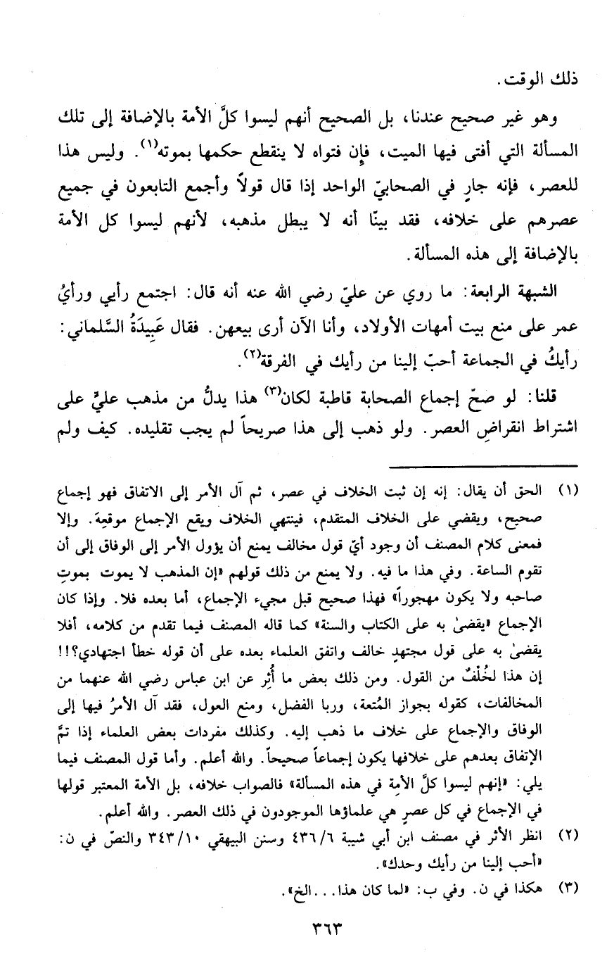 وهو غير صحيح عندنا بل الصحيح أنهم ليسوا كل الأمة بالإضافة إلى تلك المسألة التي أفتى فيها الميت فإن فتواه لا ينقطع حكمها بموته وليس هذا للعصر فإنه جار في الصحابي الواحد إذا قال قولا وأجمع التابعون في جميع عصرهم على خلافه فقد بينا أنه لا يبطل مذهبه لأنهم ليسوا كل الأمة بالإضافة إلى هذه المسألة