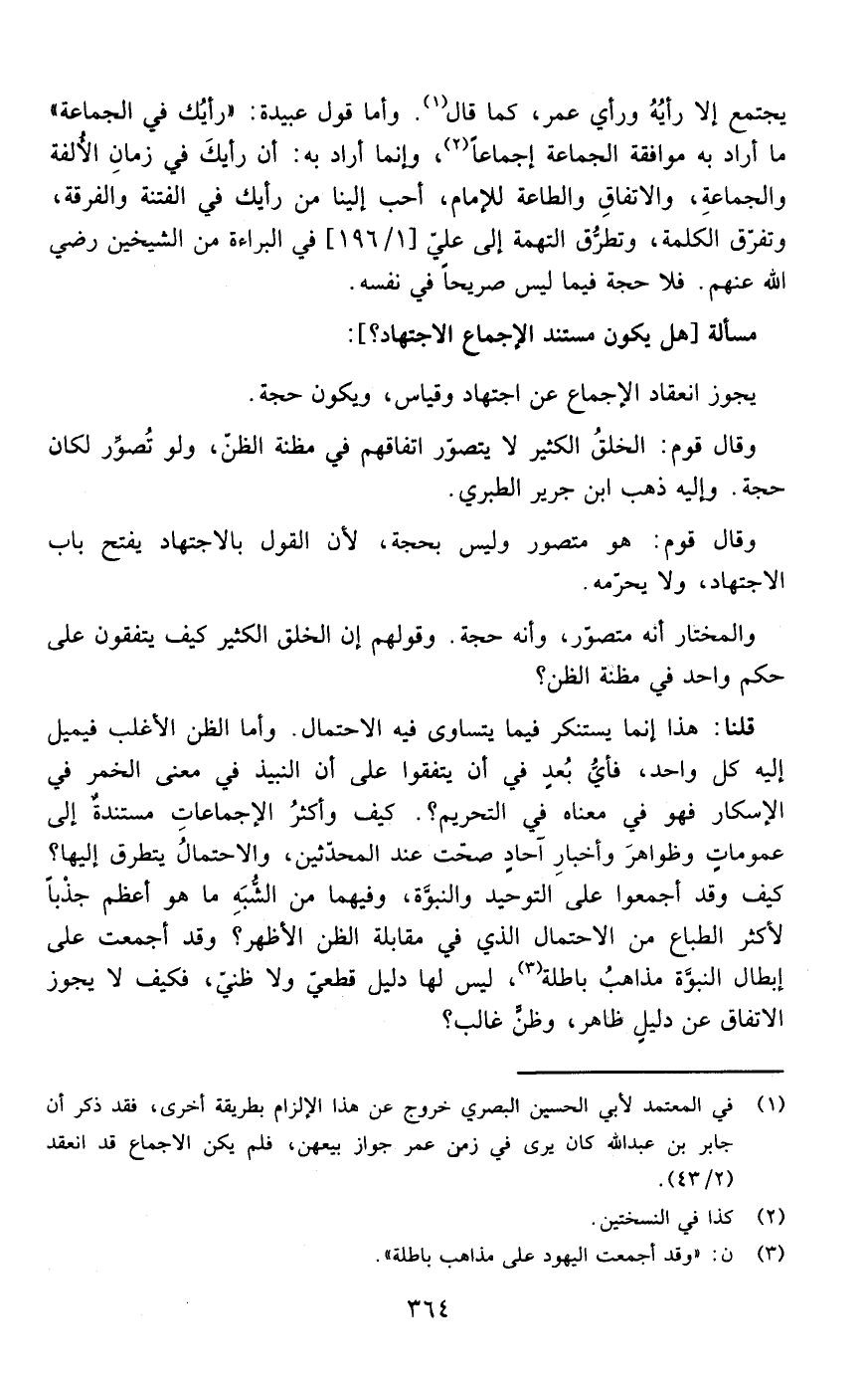 يجتمع إلا رأيه ورأي عمر كما قال وأما قول عبيدة رأيك في الجماعة ما أراد به موافقة الجماعة إجماعا وإنما أراد به أن رأيك في زمان الألفة والجماعة والاتفاق والطاعة للإمام أحب إلينا من رأيك في الفتنة والفرقة وتفرق الكلمة وتطرق التهمة إلى علي في البراءة من الشيخين رضي الله عنهم فلا حجة فيما ليس صريحا في نفسه.