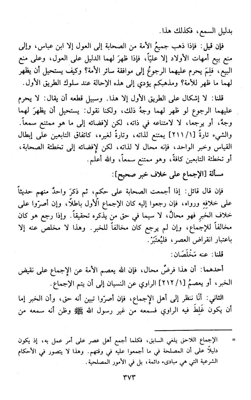 فإن قيل: فإذا ذهب جميع الأمة من الصحابة إلى العول إلا ابن عباس وإلى منع بيع أمهات الأولاد إلا عليا فإذا ظهر لهما الدليل على العول وعلى منع البيع فلم يحرم عليهما الرجوع إلى موافقة سائر الأمة ؟وكيف يستحيل أن يظهر لهما ما ظهر للأمة؟ ومذهبكم يؤدي إلى هذه الإحالة عند سلوك الطريق الأول