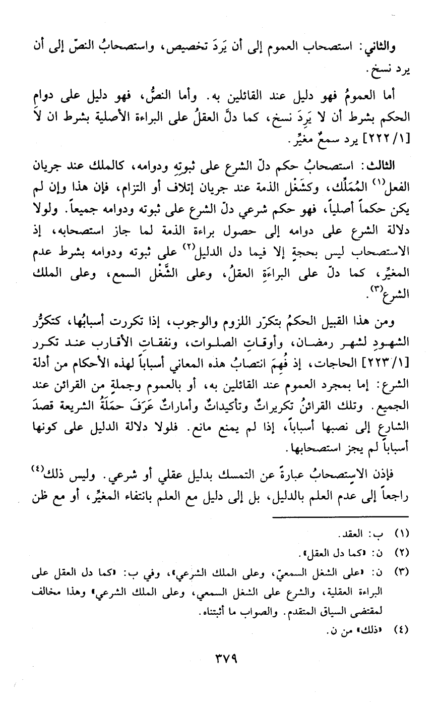 والثاني استصحاب العموم إلى أن يرد تخصيص واستصحاب النص إلى أن يرد نسخ