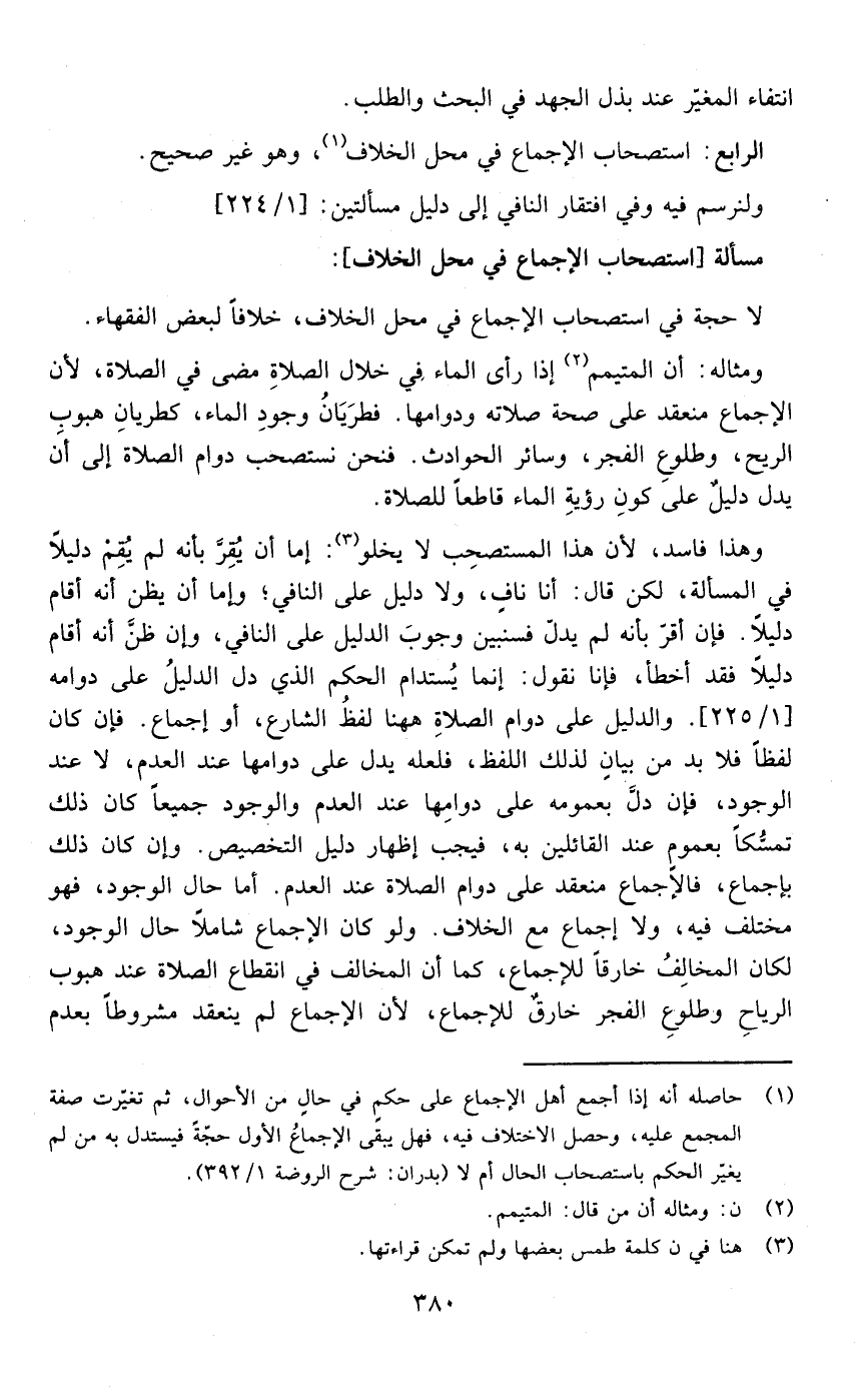 الرابع: استصحاب الإجماع في محل الخلاف وهو غير صحيح