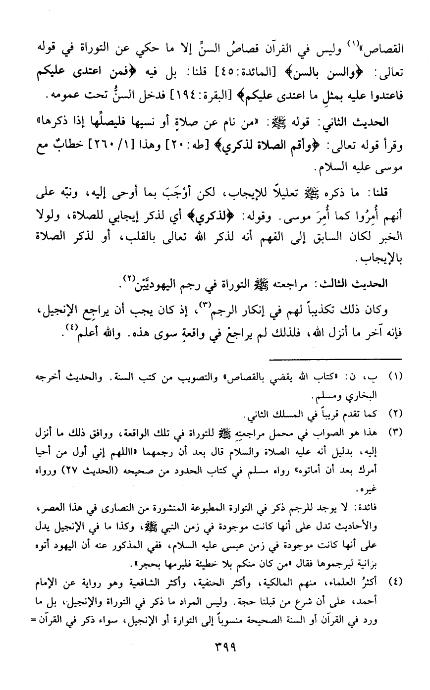 الحديث الثاني :قوله صلى الله عليه وسلم: "من نام عن صلاة أو نسيها فليصلها إذا ذكرها " وقرأ قوله تعالى {وَأَقِمِ الصَّلاةَ لِذِكْرِي} ]طه: من الآية14[ وهذا خطاب مع موسى عليه السلام