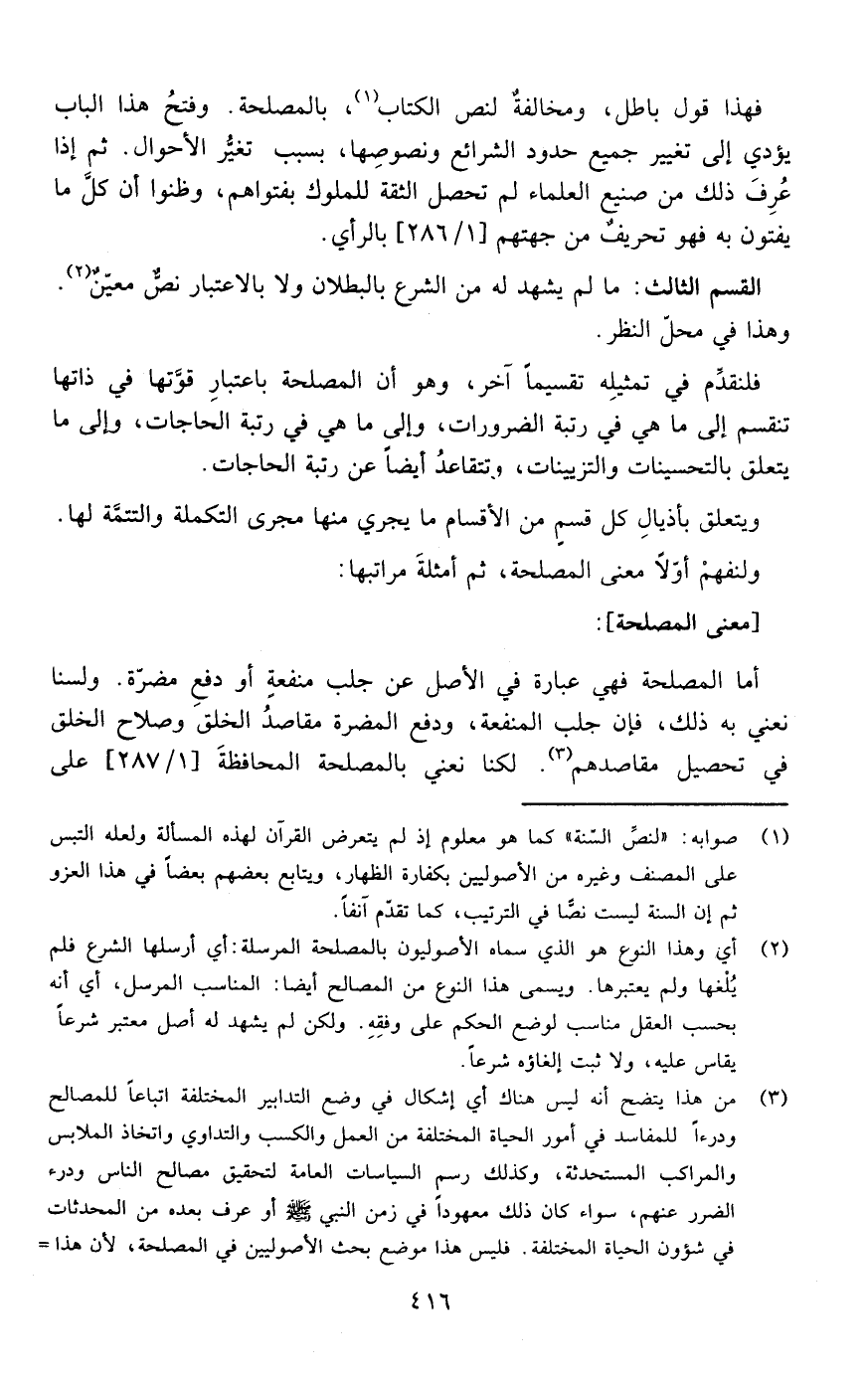 ويتعلق بأذيال كل قسم من الأقسام ما يجري منها مجرى التكملة والتتمة لها ولنفهم أولا معنى المصلحة ثم أمثلة مراتبها: