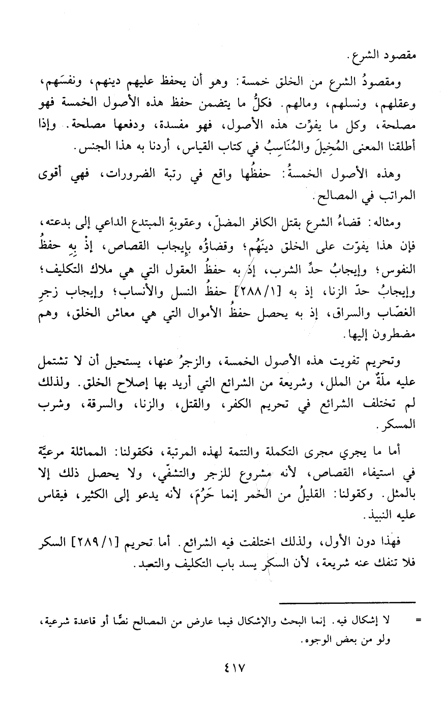 وهذه الأصول الخمسة :حفظها واقع في رتبة الضرورات فهي أقوى المراتب في المصالح