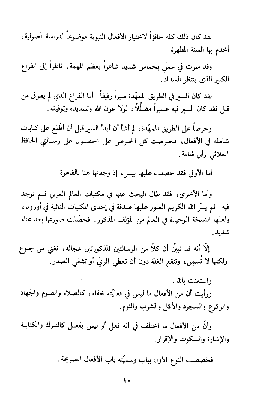 لقد كان ذلك كله حافزاً لاختيار الأفعال النبوية موضوعاً لدراسة أصولية، أخدم بها السنة المطهرة.