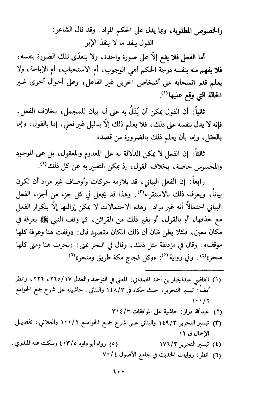 (١) القاضي عبد الجبار بن أحمد الهمداني: المغني في التوحيد والعدل ١٧/ ٢٦٥، ٢٢٦، وانظر أيضاً: تيسير التحرير، حيث حكاه في ٣/ ١٤٨ والبناني: حاشيته على شرح جمع الجوامع ٢/ ١٠٠