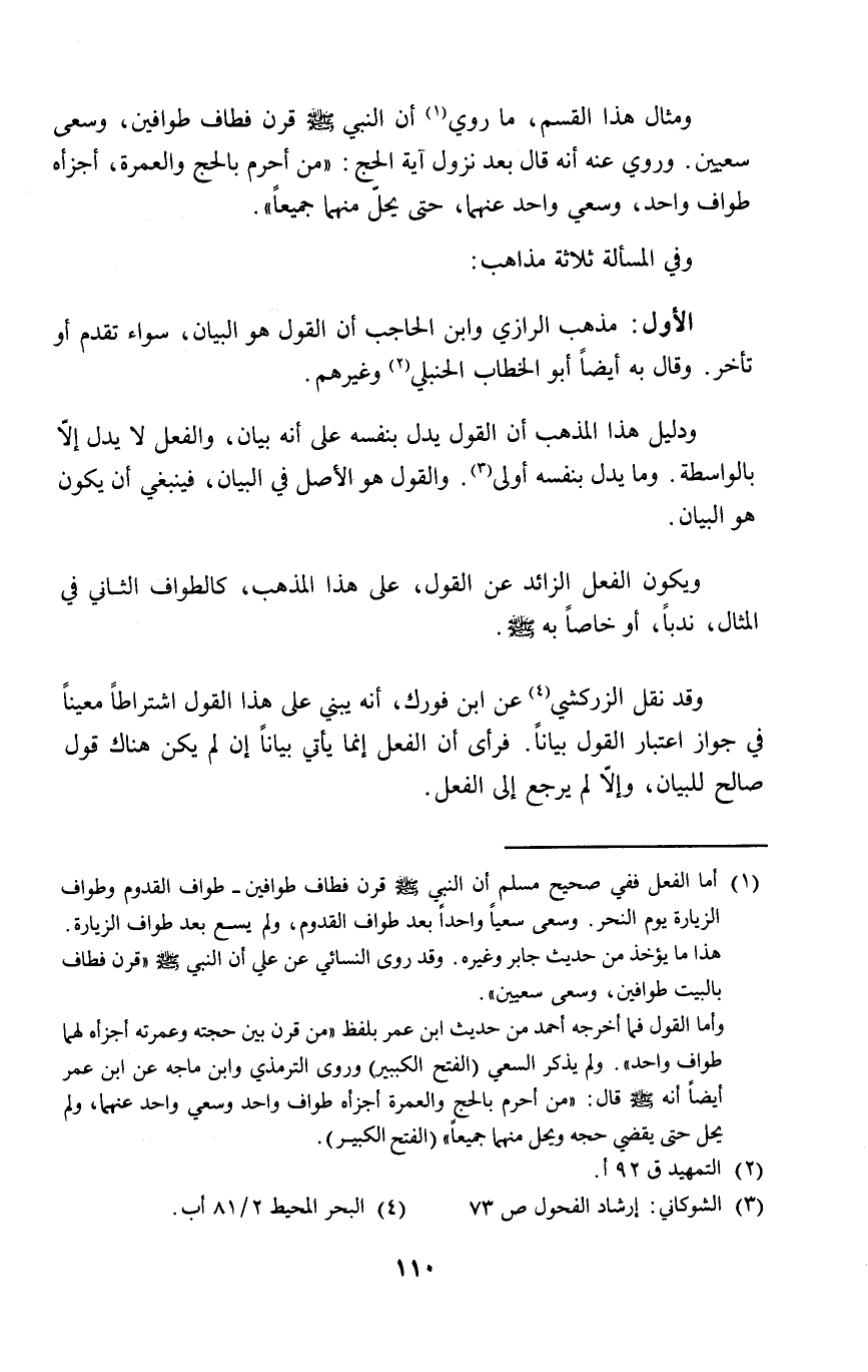 ودليل هذا المذهب أن القول يدل بنفسه على أنه بيان، والفعل لا يدل إلاّ بالواسطة. وما يدل بنفسه أولى (٣). والقول هو الأصل في البيان، فينبغي أن يكون هو البيان.