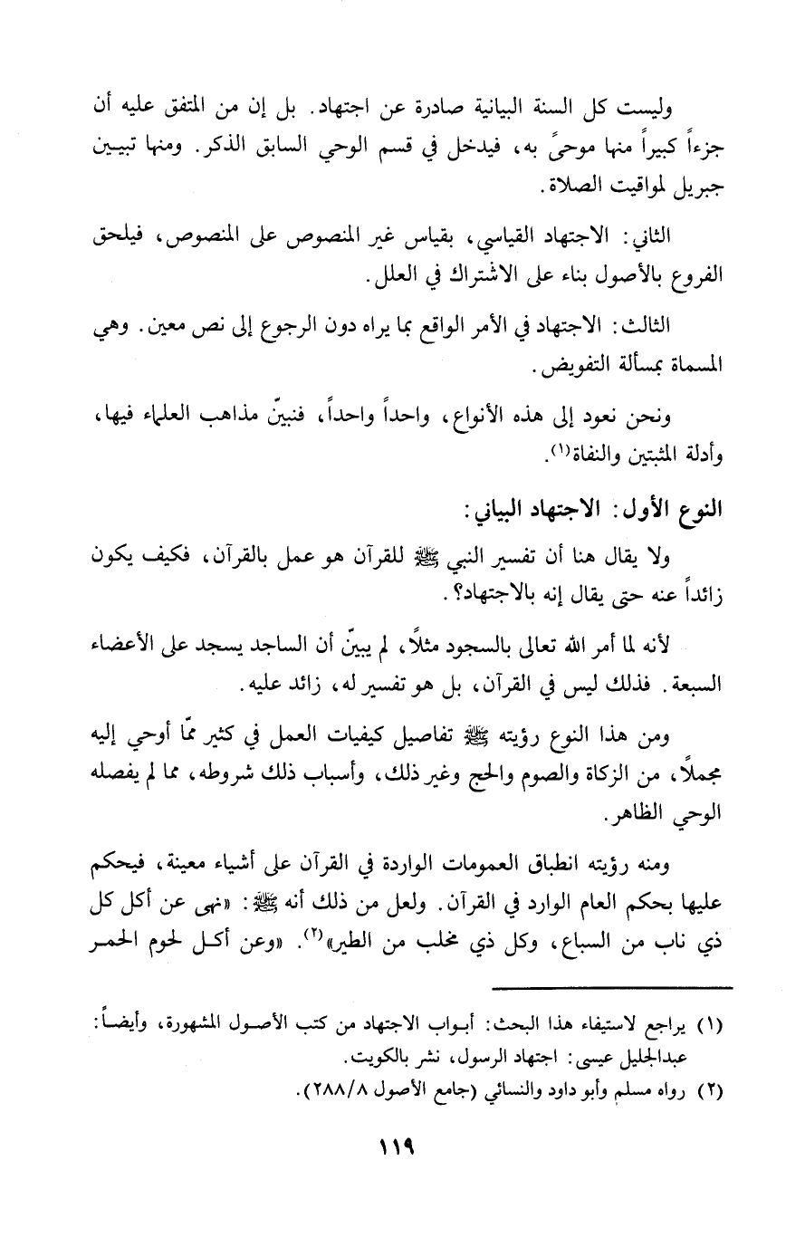 (١) يراجع لاستيفاء هذا البحث: أبواب الاجتهاد من كتب الأصول المشهورة، وأيضاً: عبد الجليل عيسى: اجتهاد الرسول، نشر بالكويت.