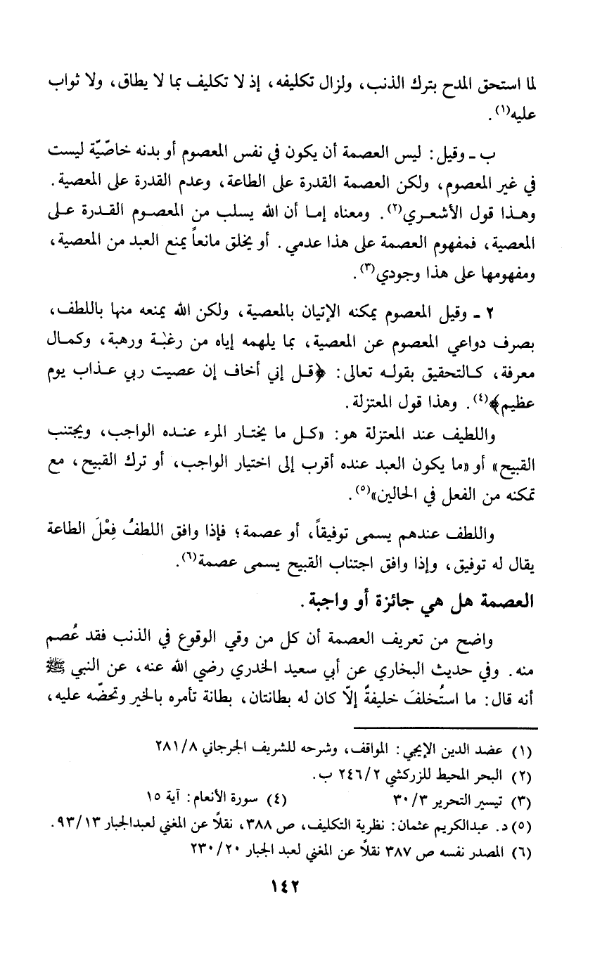 (٥) د. عبد الكريم عثمان: نظرية التكليف، ص ٣٨٨، نقلاً عن المغني لعبد الجبار ١٣/ ٩٣.