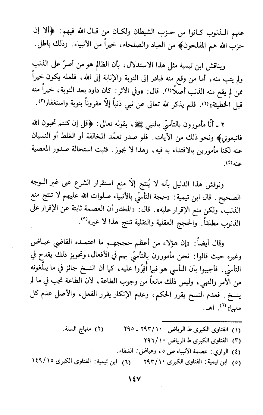 (٤) الرازي: عصمة الأنبياء ص ٥، وعياض: الشفاء.