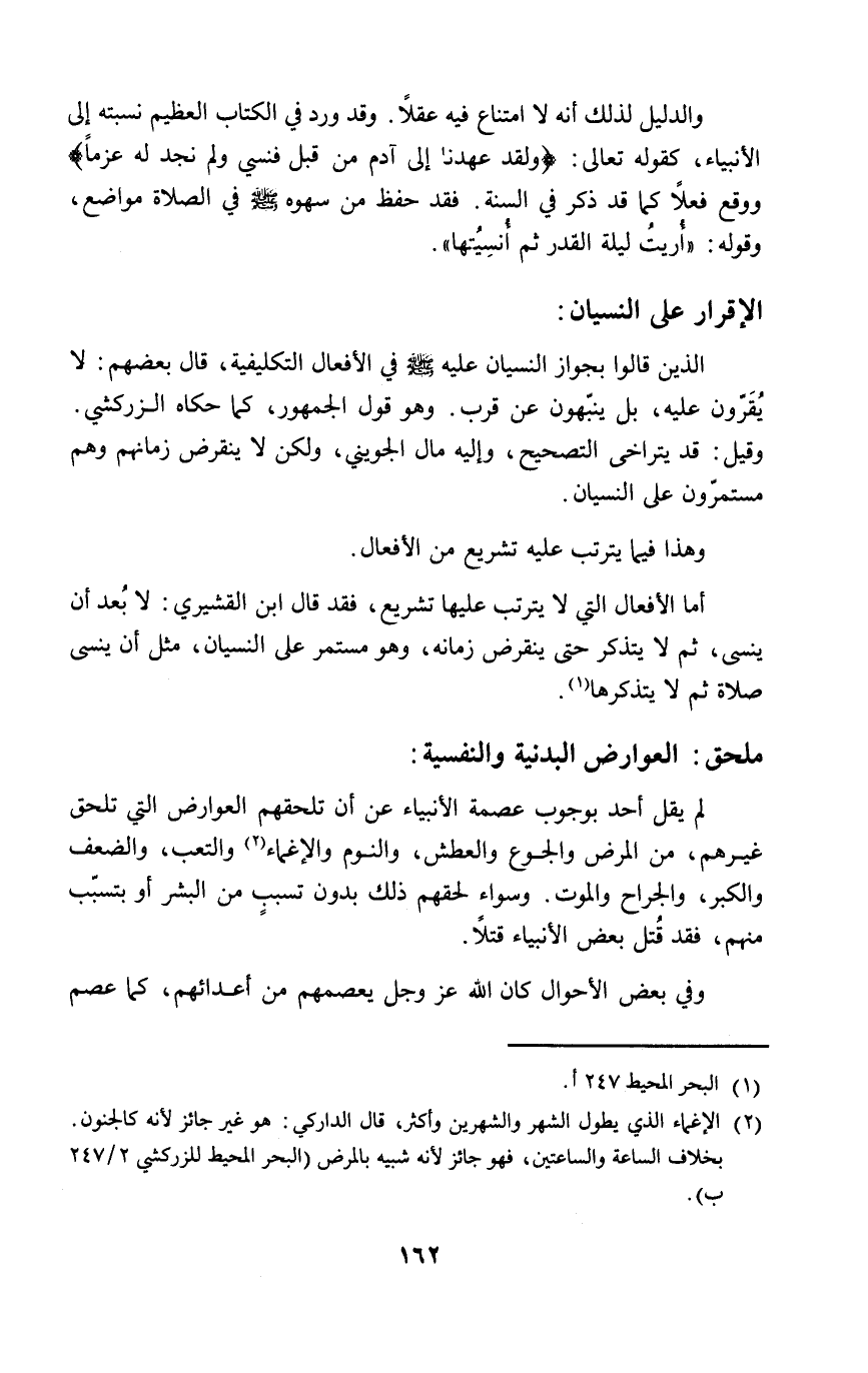الذين قالوا بجواز النسيان عليه - صلى الله عليه وسلم - في الأفعال التكليفية، قال بعضهم: لا يُقَرّون عليه، بل ينبّهون عن قرب. وهو قول الجمهور، كما حكاه الزركشي. وقيل: قد يتراخى التصحيح، وإليه مال الجويني، ولكن لا ينقرض زمانهم وهم مستمرّون على النسيان.