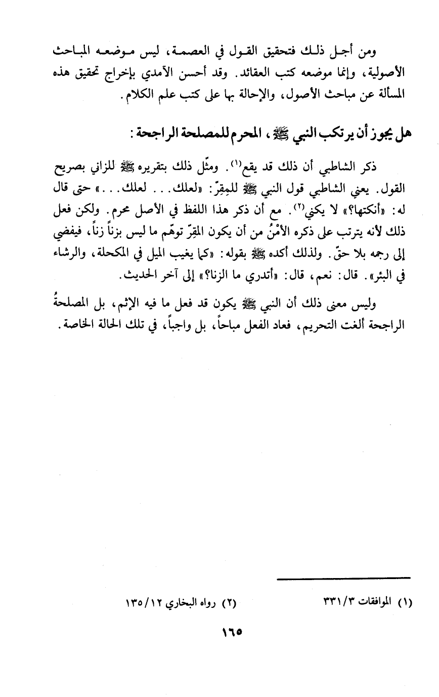 ومن أجل ذلك فتحقيق القول في العصمة، ليس موضعه المباحث الأصولية، وإنما موضعه كتب العقائد. وقد أحسن الآمدي بإخراج تحقيق هذه المسألة عن مباحث الأصول، والإحالة بها على كتب علم الكلام.