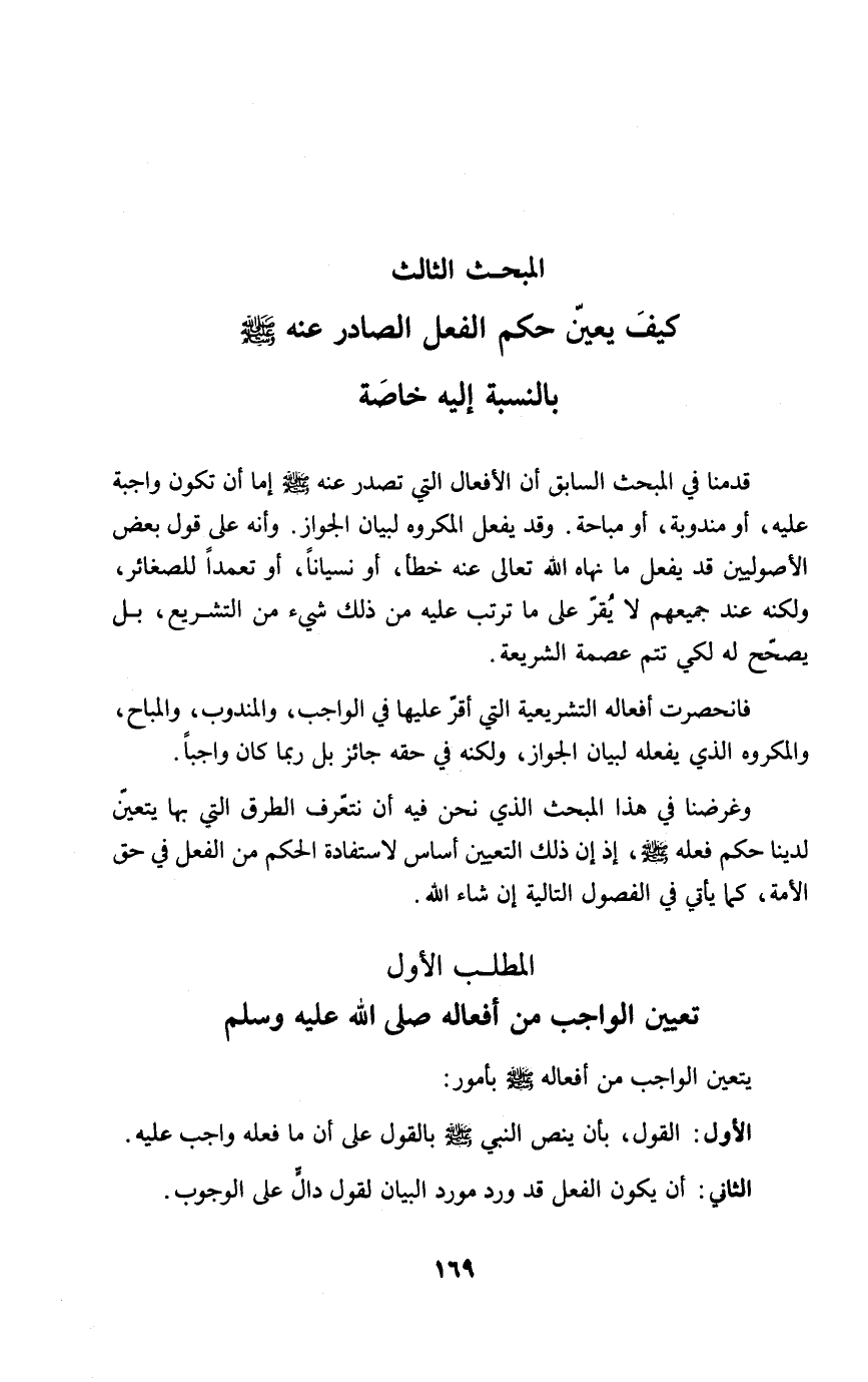 المبحث الثالث كيفَ يعيّن حكم الفعل الصادر عنه - صلى الله عليه وسلم - بالنسبة إليه خاصّة