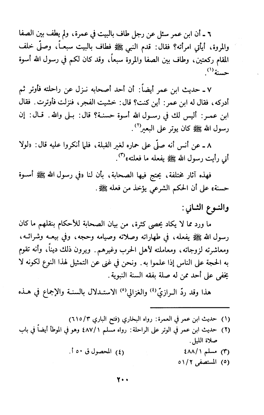 فهذه آثار مختلفة، يحتج فيها الصحابة، بأن لنا "في رسول الله - صلى الله عليه وسلم - أسوة حسنة" على أن الحكم الشرعي يؤخذ من فعله - صلى الله عليه وسلم -.