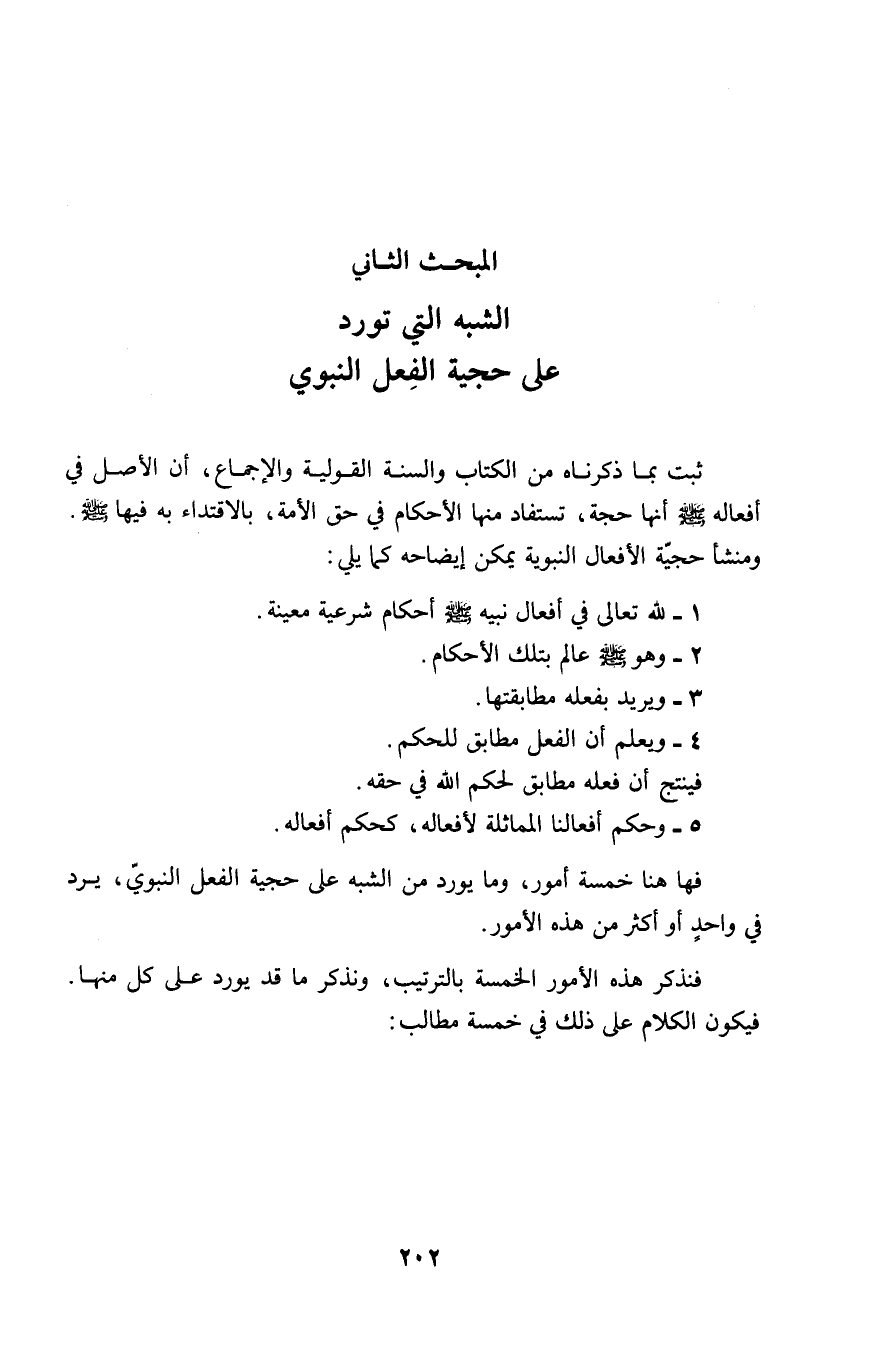 فها هنا خمسة أمور، وما يورد من الشبه على حجية الفعل النبويّ، يرد في واحدٍ أو أكثر من هذه الأمور.
