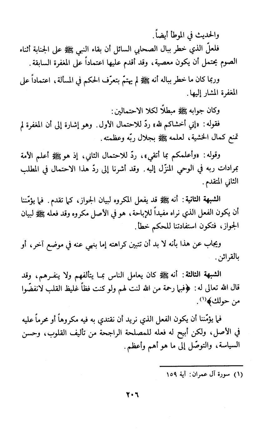 الشبهة الثالثة: أنه - صلى الله عليه وسلم - كان يعامل الناس بما يتألفهم ولا ينفرهم، وقد قال الله تعالى له: {فبما رحمة من الله لنت لهم ولو كنت فظاً غليظ القلب لانفضوا من حولك} (١).