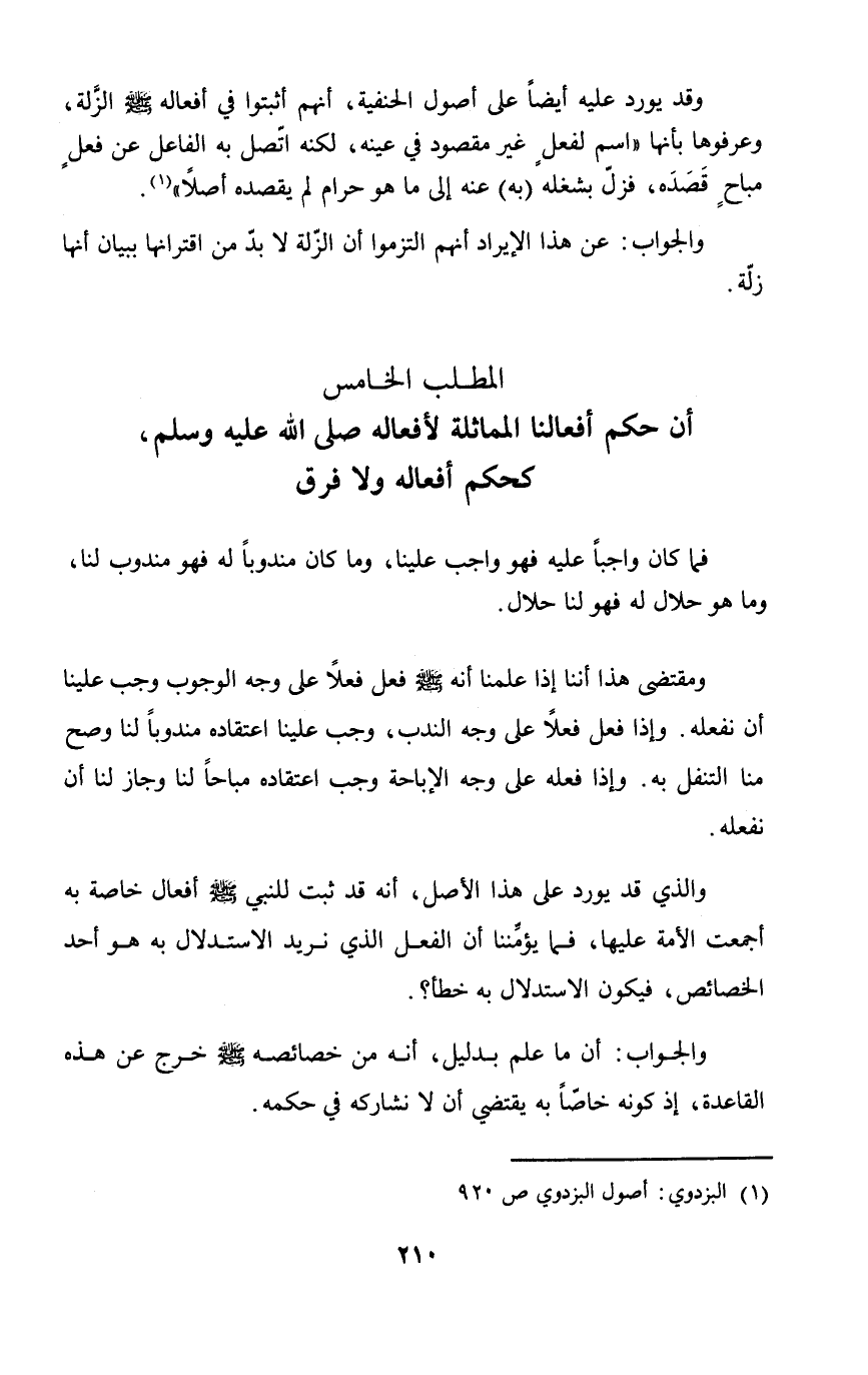 المطلب الخامس أن حكم أفعالنا المماثلة لأفعاله صلى الله عليه وسلم، كحكم أفعاله ولا فرق