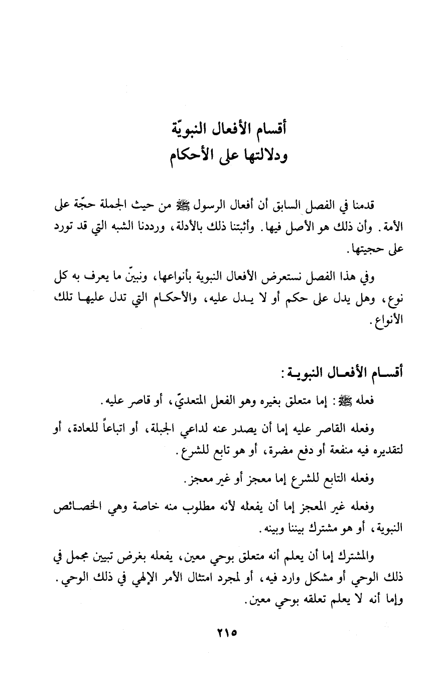 وفي هذا الفصل نستعرض الأفعال النبوية بأنواعها، ونبيّن ما يعرف به كل نوع، وهل يدل على حكم أو لا يدل عليه، والأحكام التي تدل عليها تلك الأنواع.