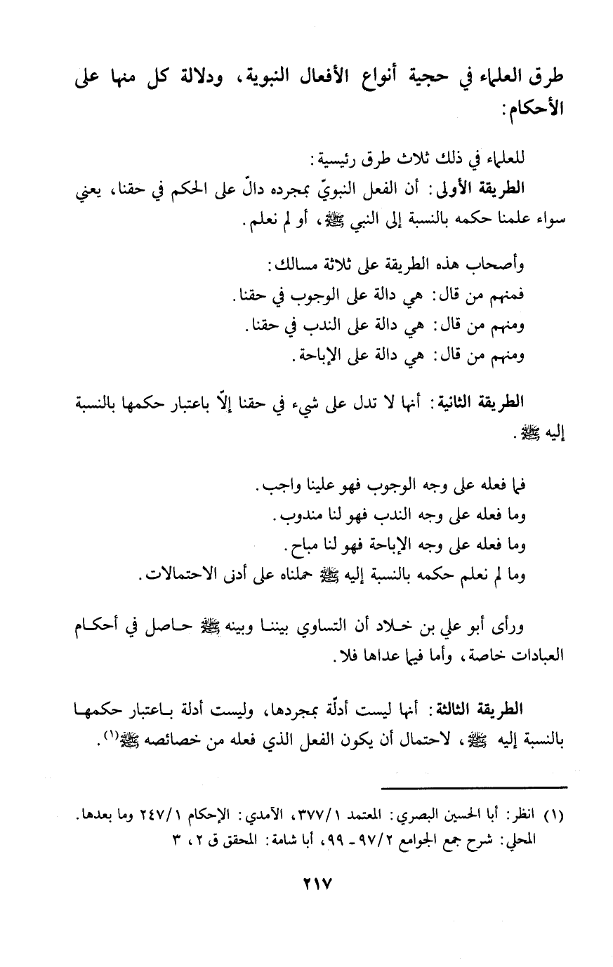 (١) انظر: أبا الحسين البصري: المعتمد ١/ ٣٧٧، الآمدي: الإحكام ١/ ٢٤٧ وما بعدها. المحلي: شرح جمع الجوامع ٢/ ٩٧ - ٩٩، أبا شامة: المحقق ق ٢، ٣