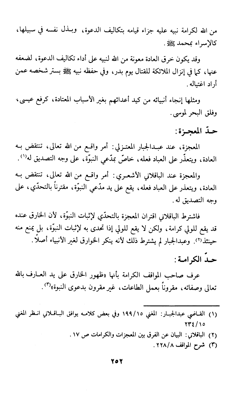 (٢) الباقلاني: البيان عن الفرق بين المعجزات والكرامات ص ١٧.