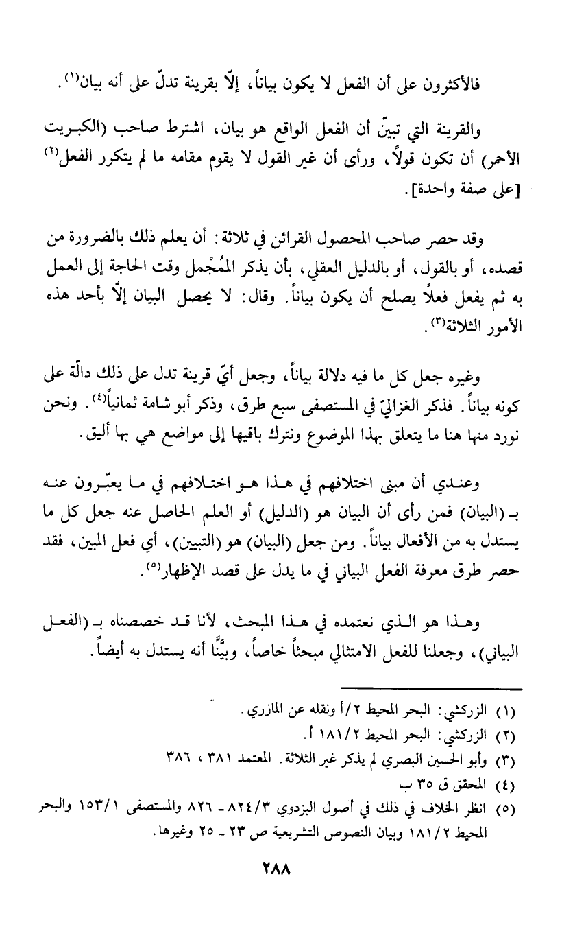 (٥) انظر الخلاف في ذلك في أصول البزدوي ٣/ ٨٢٤ - ٨٢٦ والمستصفى ١/ ١٥٣ والبحر المحيط ٢/ ١٨١ وبيان النصوص التشريعية ص ٢٣ - ٢٥ وغيرها.