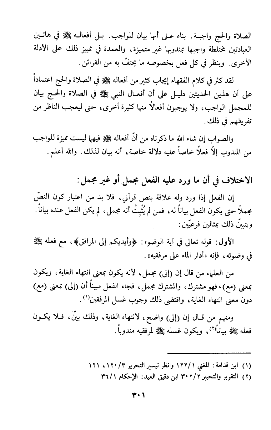 (١) ابن قدامة: المغني ١٢٢/ ١ وانظر تيسير التحرير ٣/ ١٢٠، ١٢١