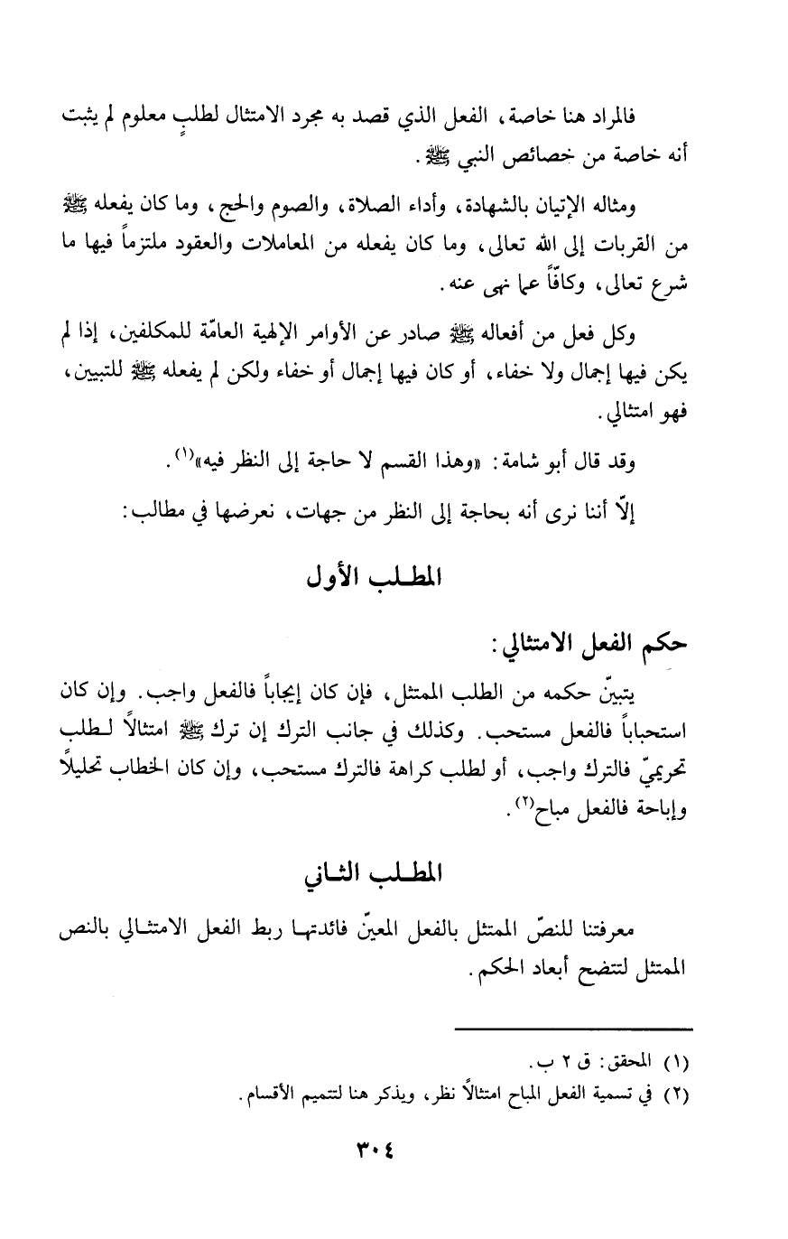 المطلب الأول حكم الفعل الامتثالي: