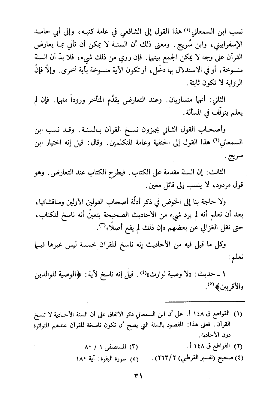 (١) القواطع ق ١٤٨ أ. على أن ابن السمعاني ذكر الاتفاق على أن السنة الآحادية لا تنسخ القرآن. فعلى هذا: المقصود بالسنة التي يصح أن تكون ناسخة للقرآن عندهم المتواترة دون الآحادية.