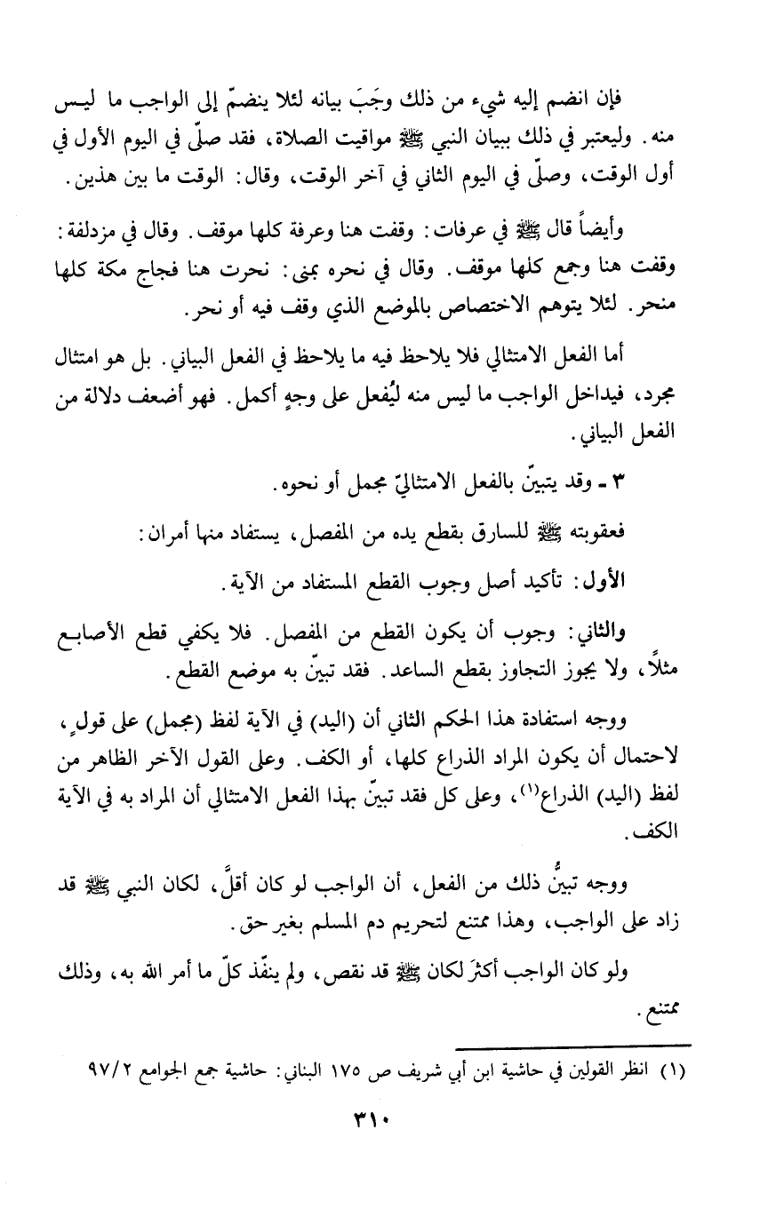 ووجه تبيُّن ذلك من الفعل، أن الواجب لو كان أقلَّ، لكان النبي - صلى الله عليه وسلم - قد زاد على الواجب، وهذا ممتنع لتحريم دم المسلم بغير حق.