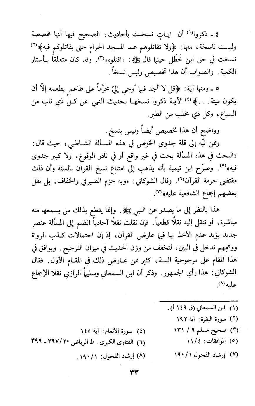 (٨) إرشاد الفحول: ١/ ١٩٠.