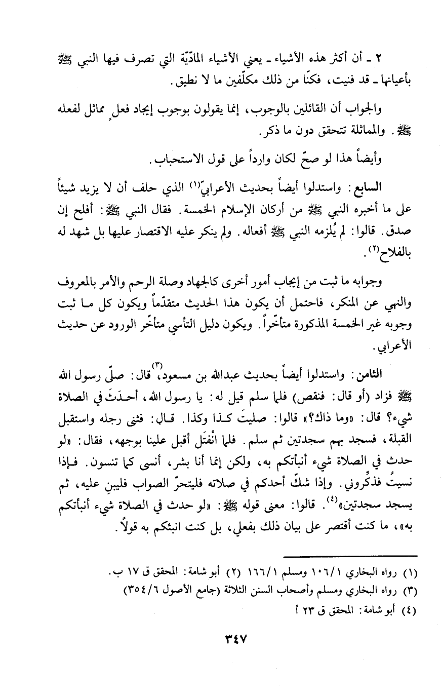 وجوابه ما ثبت من إيجاب أمور أخرى كالجهاد وصلة الرحم والأمر بالمعروف والنهي عن المنكر، فاحتمل أن يكون هذا الحديث متقدّماً ويكون كل ما ثبت وجوبه غير الخمسة المذكورة متأخّراً. ويكون دليل التأسي متأخّر الورود عن حديث الأعرابي.