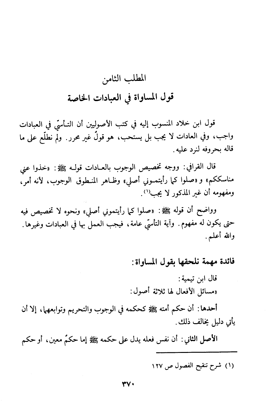 المطلب الثامن قول المساواة في العبادات الخاصة