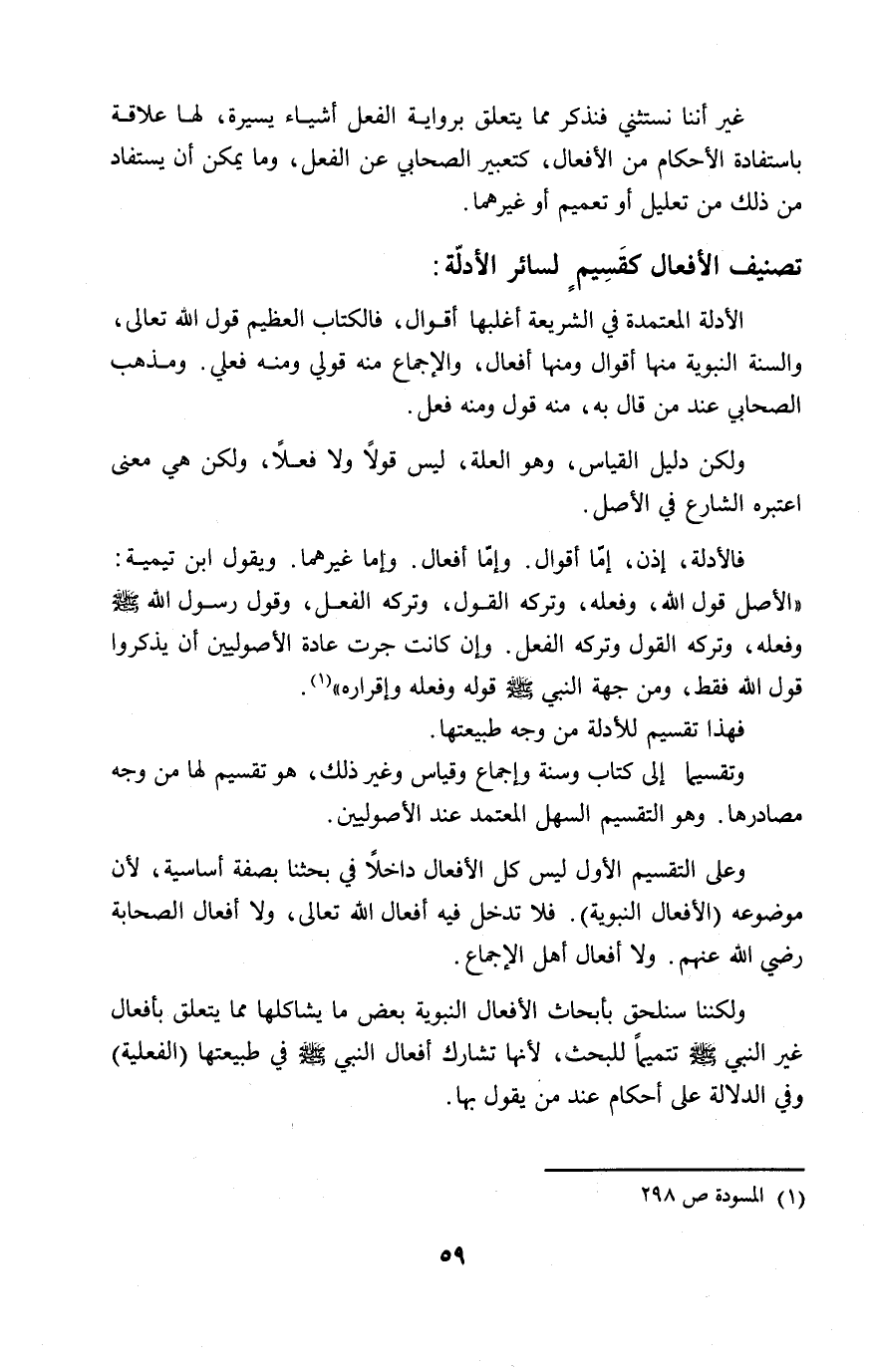 ولكننا سنلحق بأبحاث الأفعال النبوية بعض ما يشاكلها مما يتعلق بأفعال غير النبي - صلى الله عليه وسلم - تتميماً للبحث، لأنها تشارك أفعال النبي - صلى الله عليه وسلم - في طبيعتها (الفعلية) وفي الدلالة على أحكام عند من يقول بها.