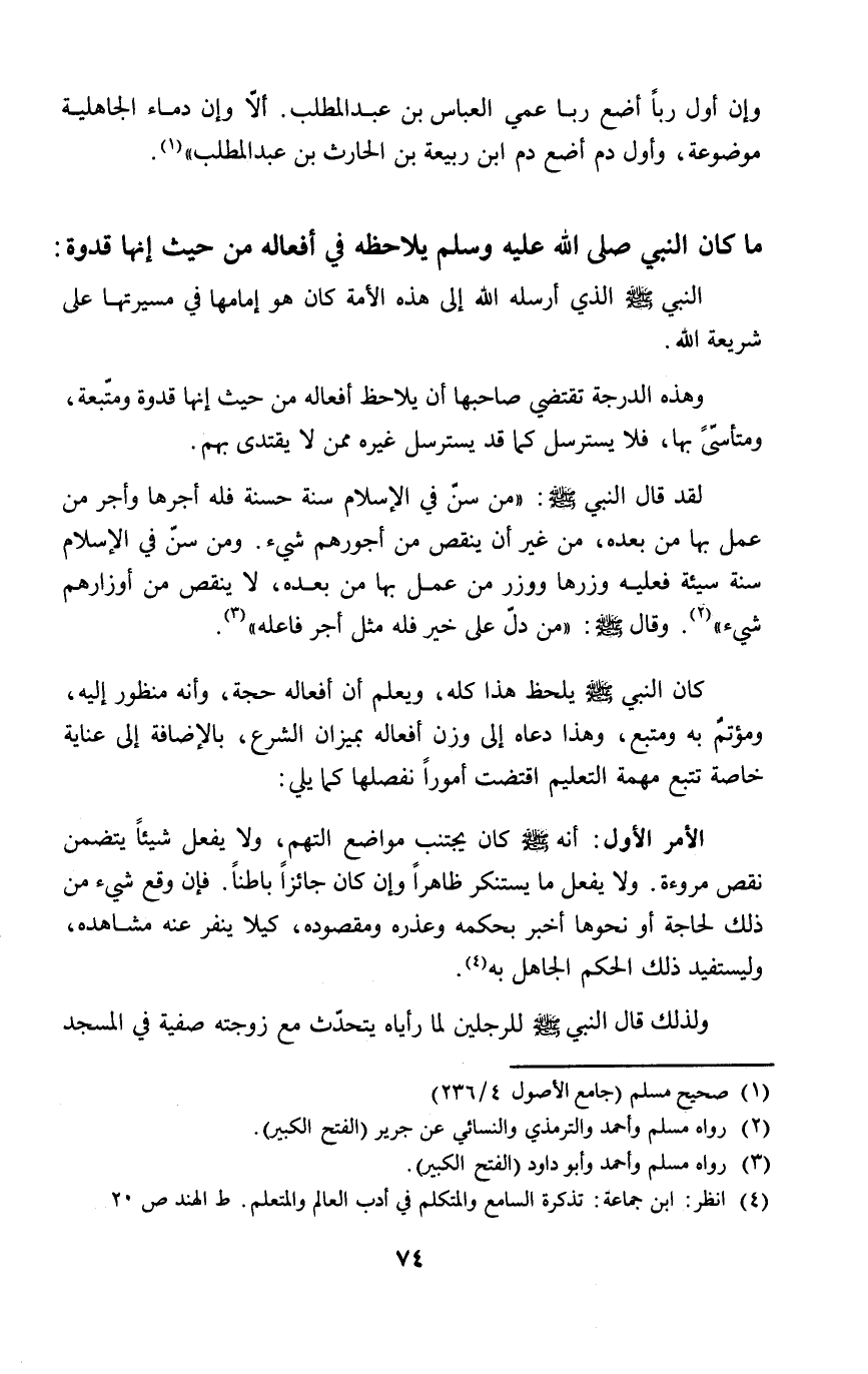 ما كان النبي صلى الله عليه وسلم يلاحظه في أفعاله من حيث إنها قدوة: