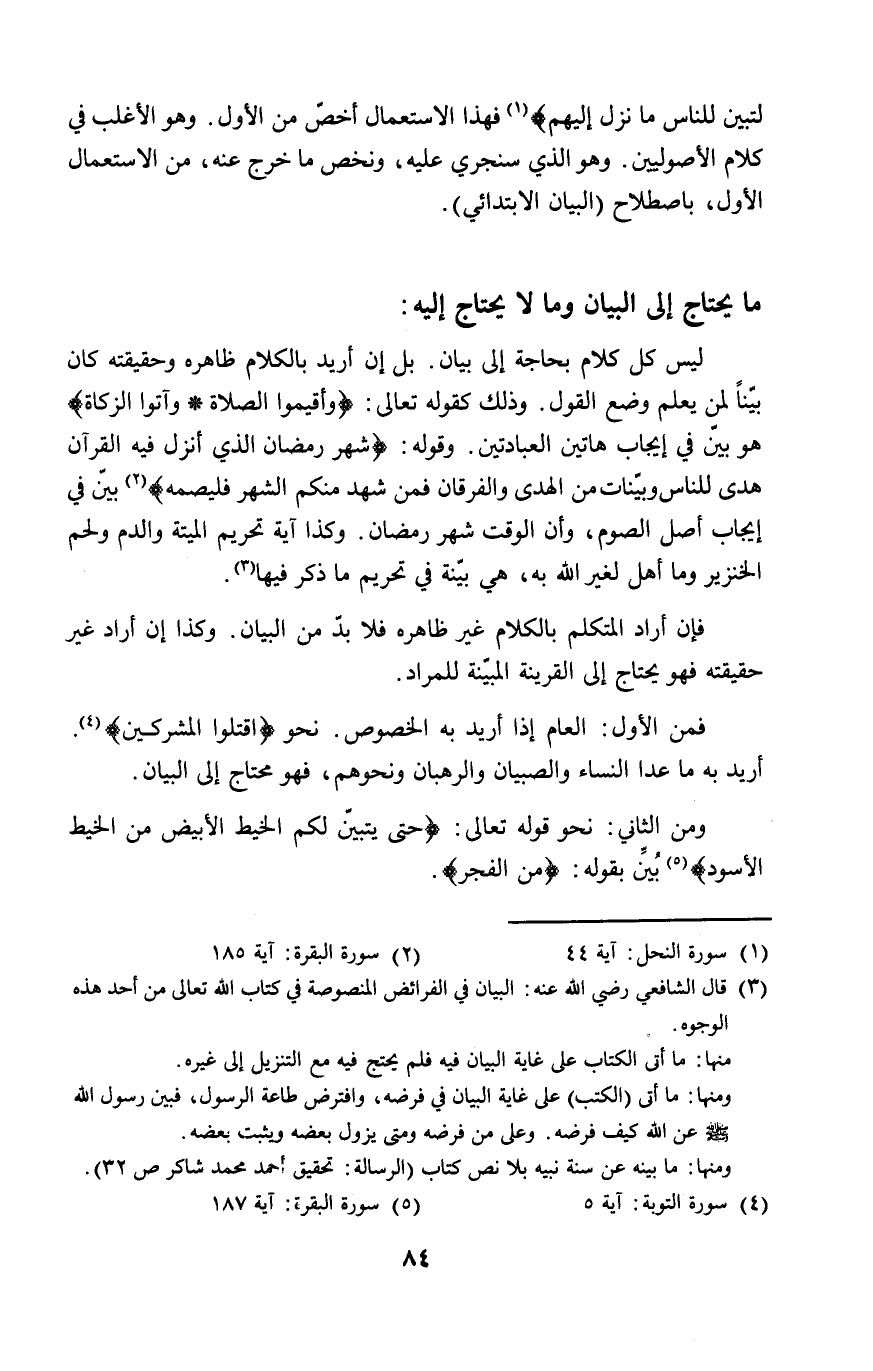 ما يحتاج إلى البيان وما لا يحتاج إليه: