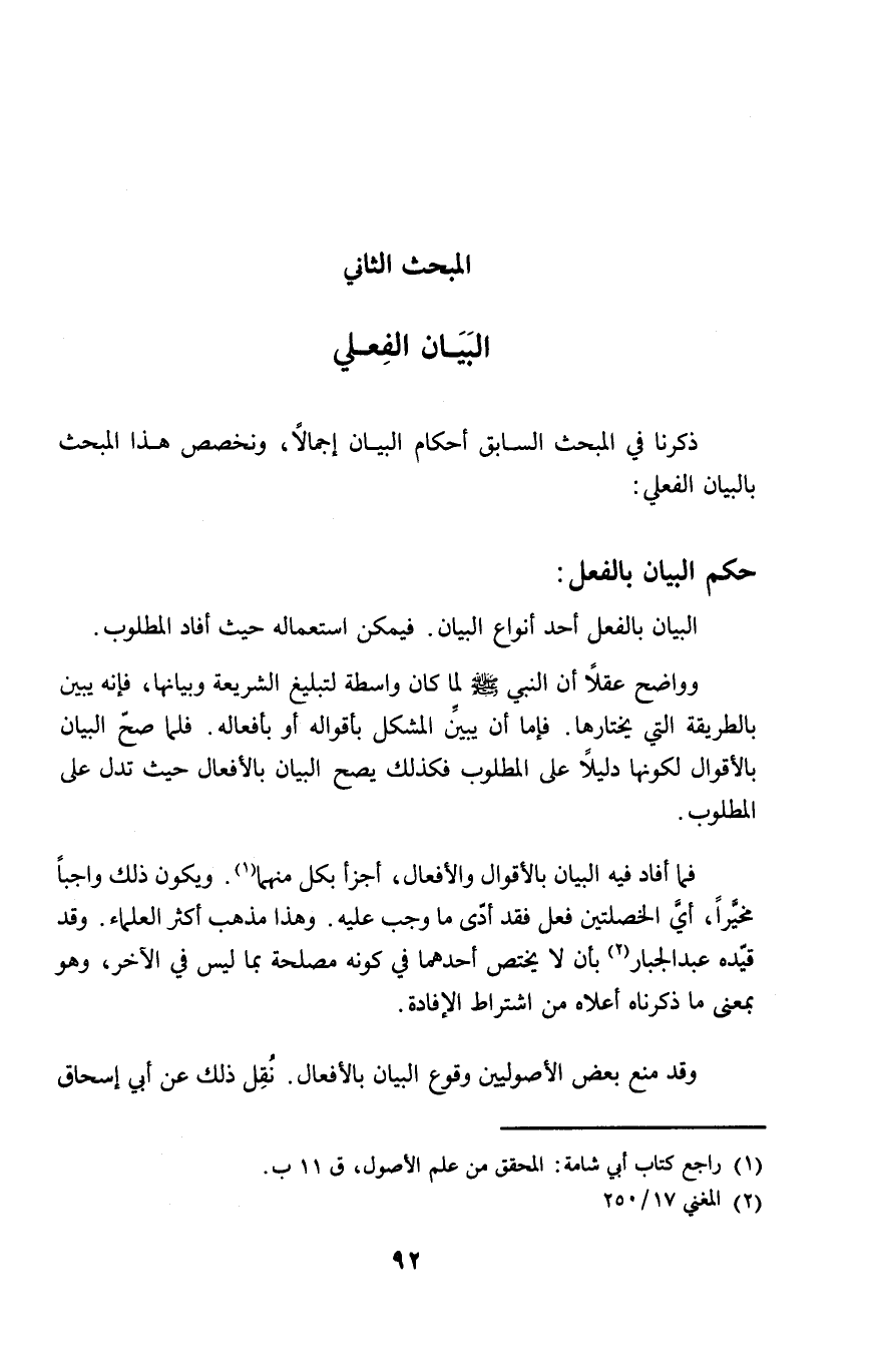 ذكرنا في المبحث السابق أحكام البيان إجمالاً، ونخصص هذا المبحث بالبيان الفعلي:
