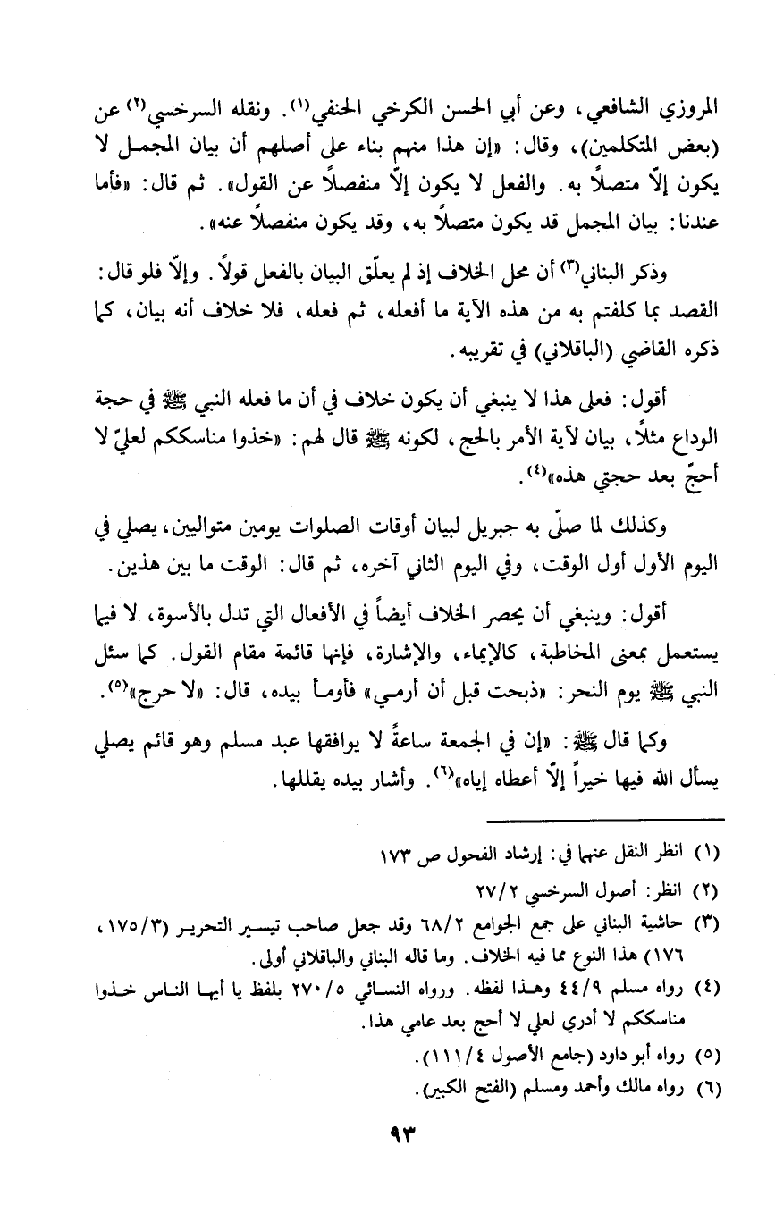 المروزي الشافعي، وعن أبي الحسن الكرخي الحنفي (١). ونقله السرخسي (٢) عن (بعض المتكلمين)، وقال: "إن هذا منهم بناء على أصلهم أن بيان المجمل لا يكون إلا متصلاً به. والفعل لا يكون إلا منفصلاً عن القول". ثم قال: "فأما عندنا: بيان المجمل قد يكون متصلاً به، وقد يكون منفصلاً عنه".