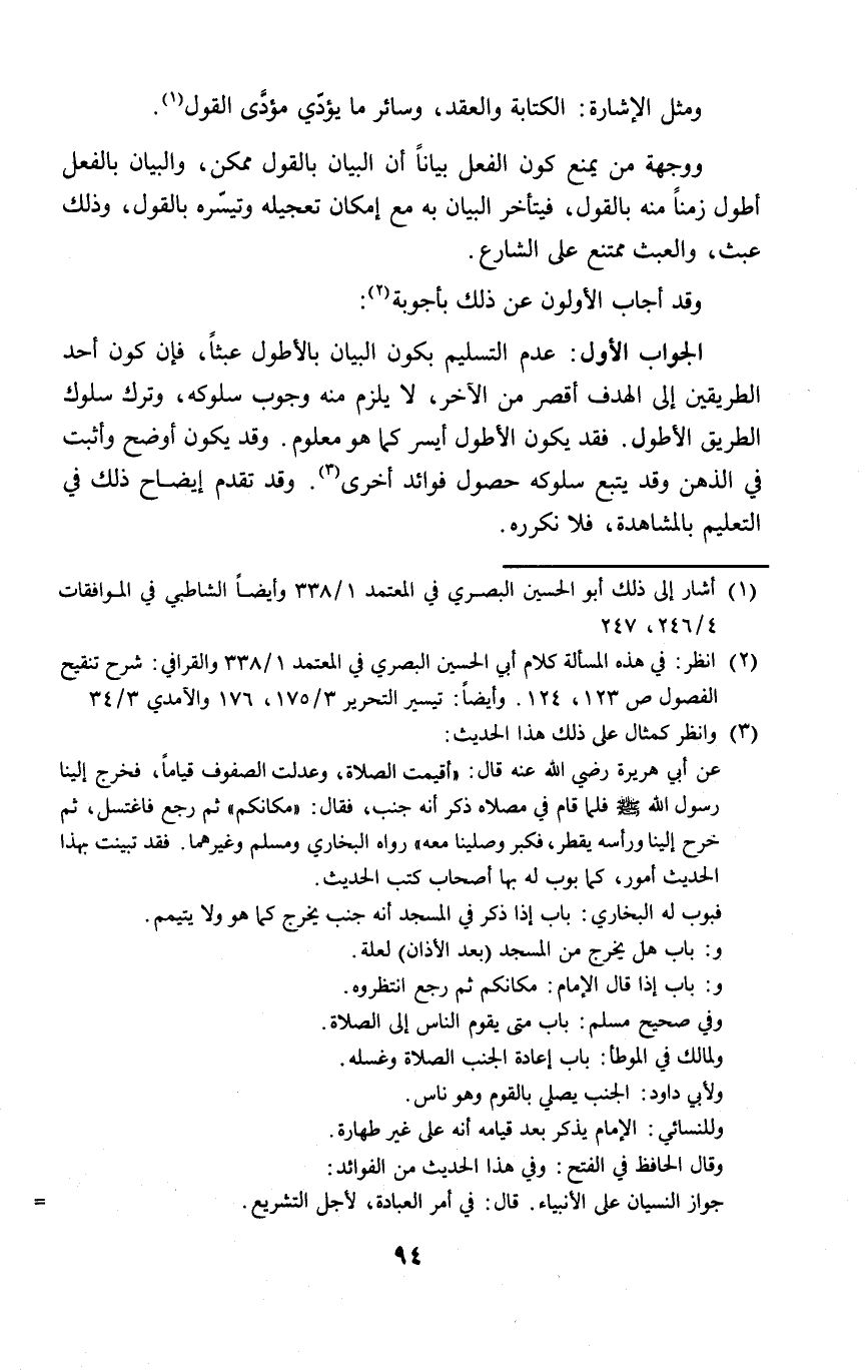 (١) أشار إلى ذلك أبو الحسين البصري في المعتمد ١/ ٣٣٨ وأيضاً الشاطبي في الموافقات ٤/ ٢٤٦، ٢٤٧