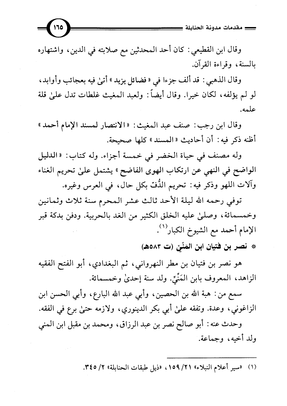 (¬1) "سير أعلام النبلاء" 21/ 159، "ذيل طبقات الحنابلة" 2/ 345.