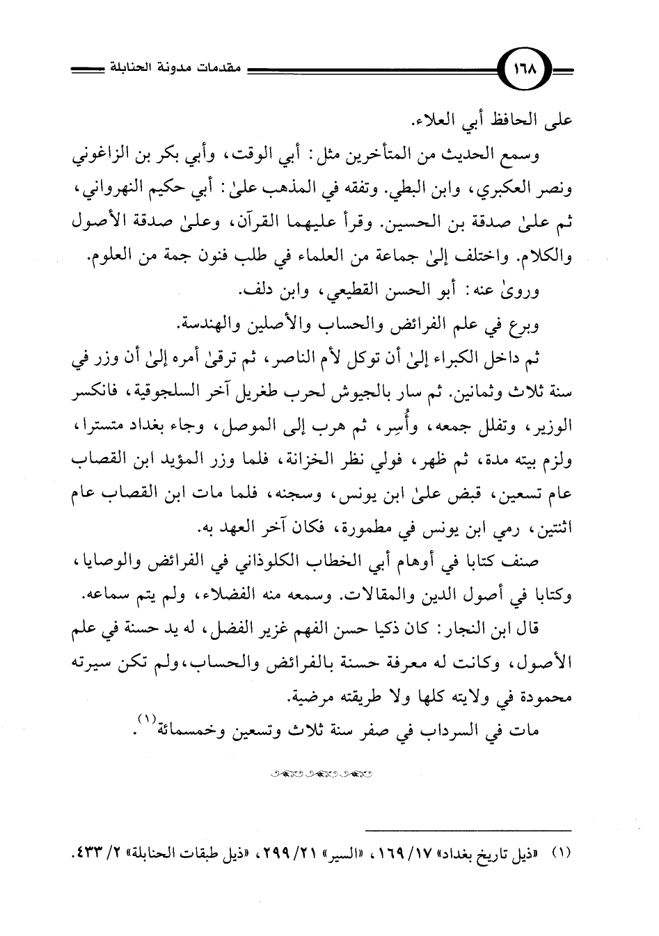 (¬1) "ذيل تاريخ بغداد" 17/ 169، "السير" 21/ 299، "ذيل طبقات الحنابلة" 2/ 433.