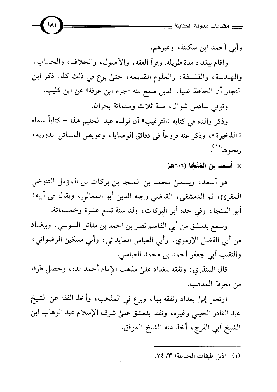 (¬1) "ذيل طبقات الحنابلة" 3/ 74.