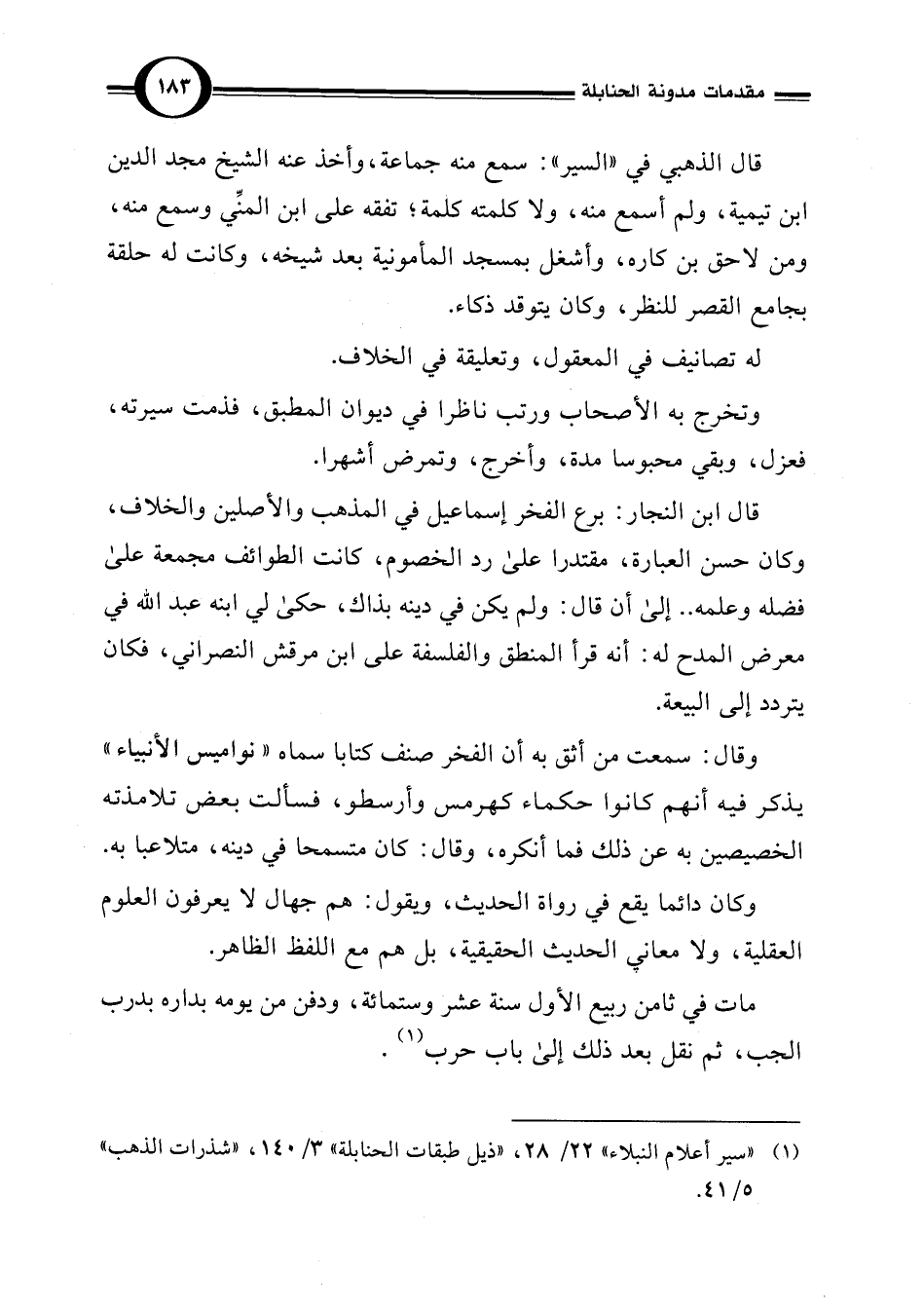(¬1) "سير أعلام النبلاء" 22/ 28، "ذيل طبقات الحنابلة" 3/ 140، "شذرات الذهب" 5/ 41.