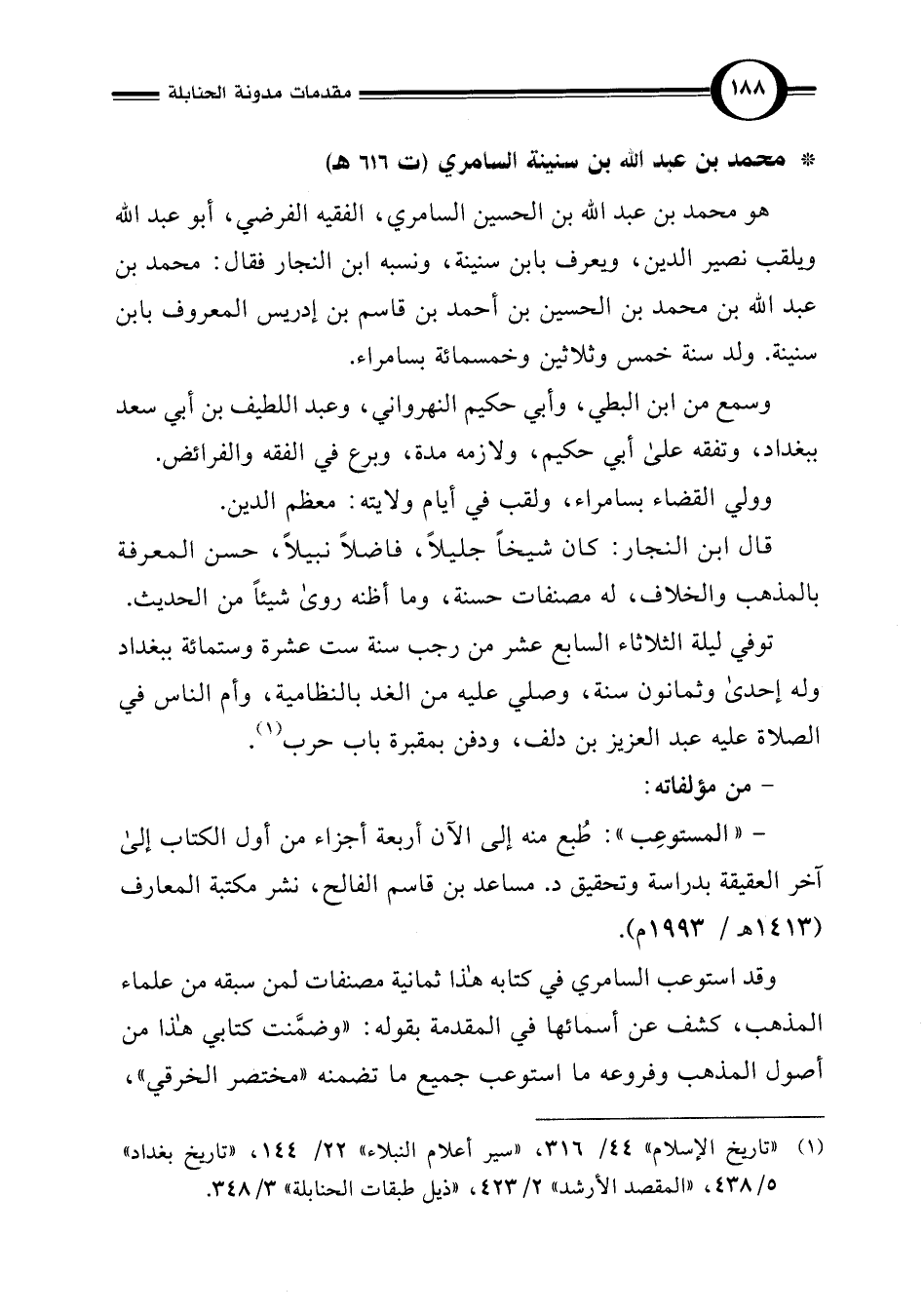 (¬1) "تاريخ الإسلام" 44/ 316، "سير أعلام النبلاء" 22/ 144، "تاريخ بغداد" 5/ 438، "المقصد الأرشد" 2/ 423، "ذيل طبقات الحنابلة" 3/ 348.