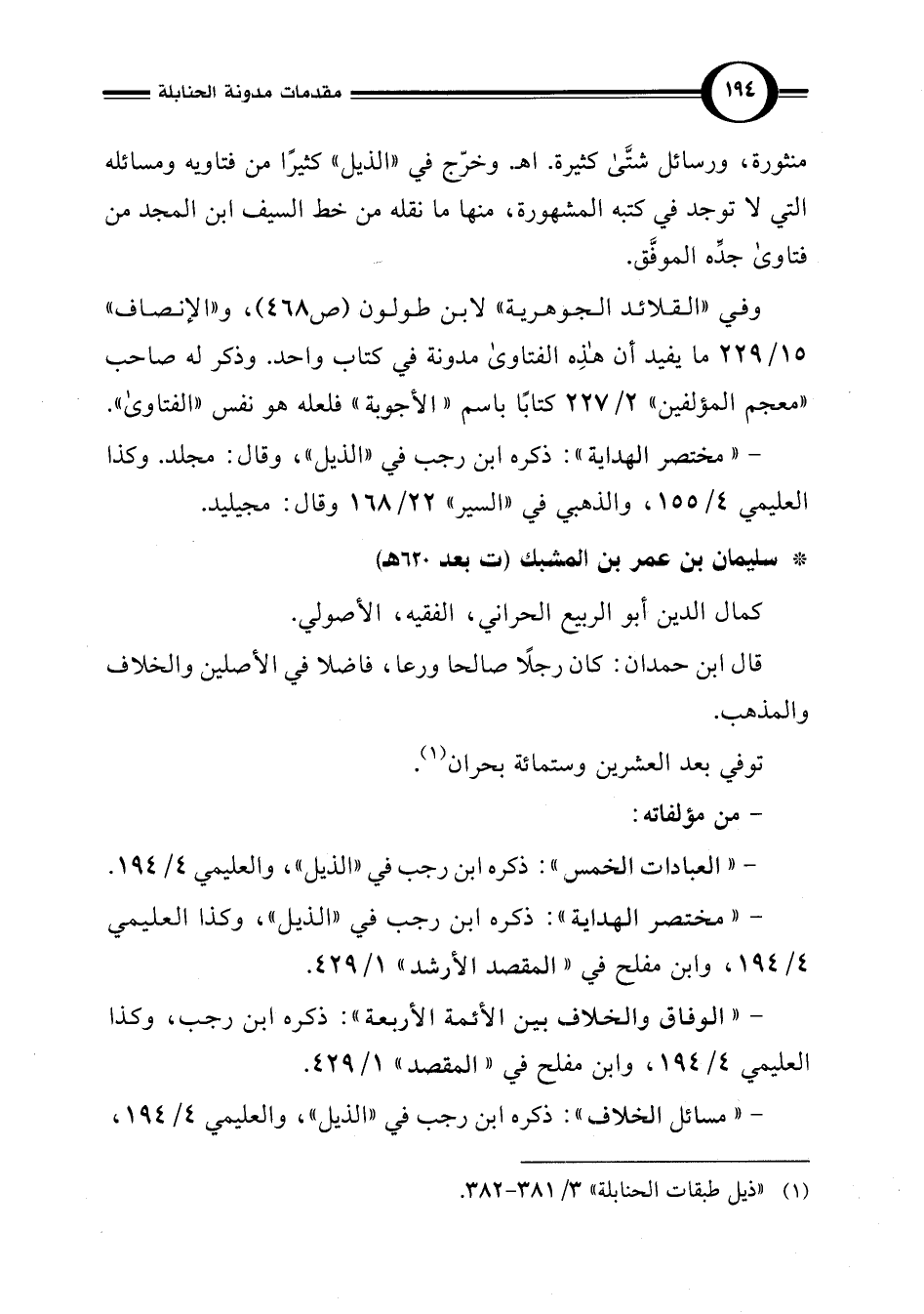 (¬1) "ذيل طبقات الحنابلة" 3/ 381 - 382.